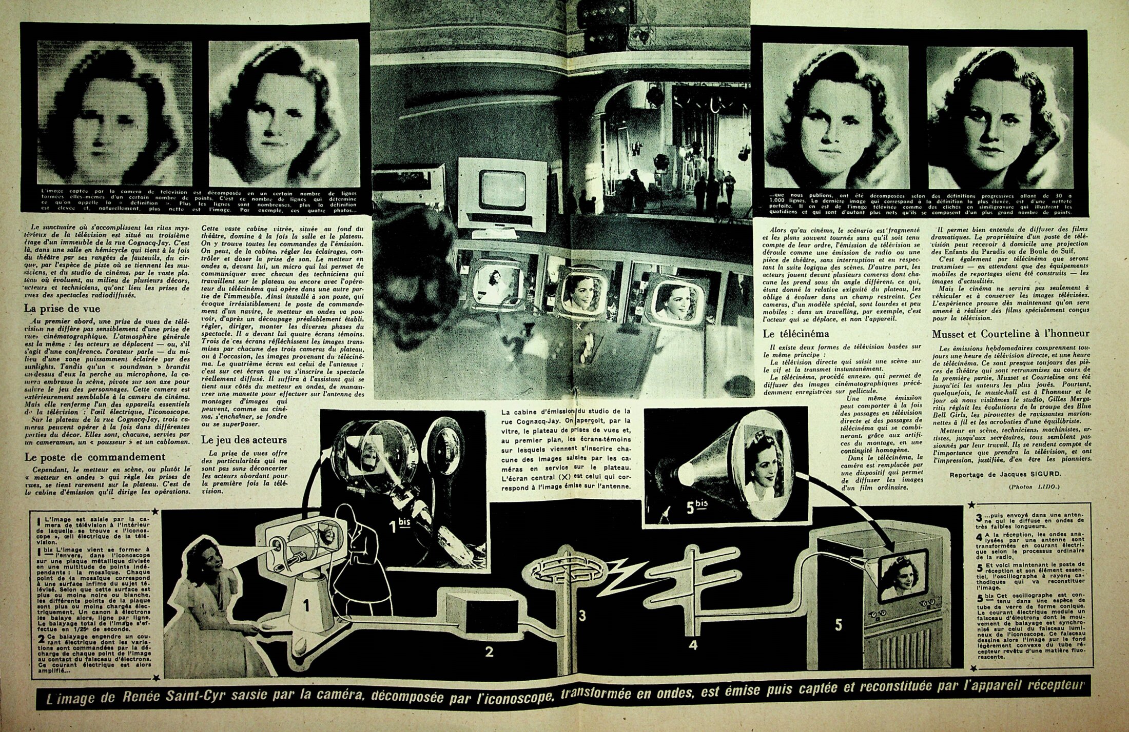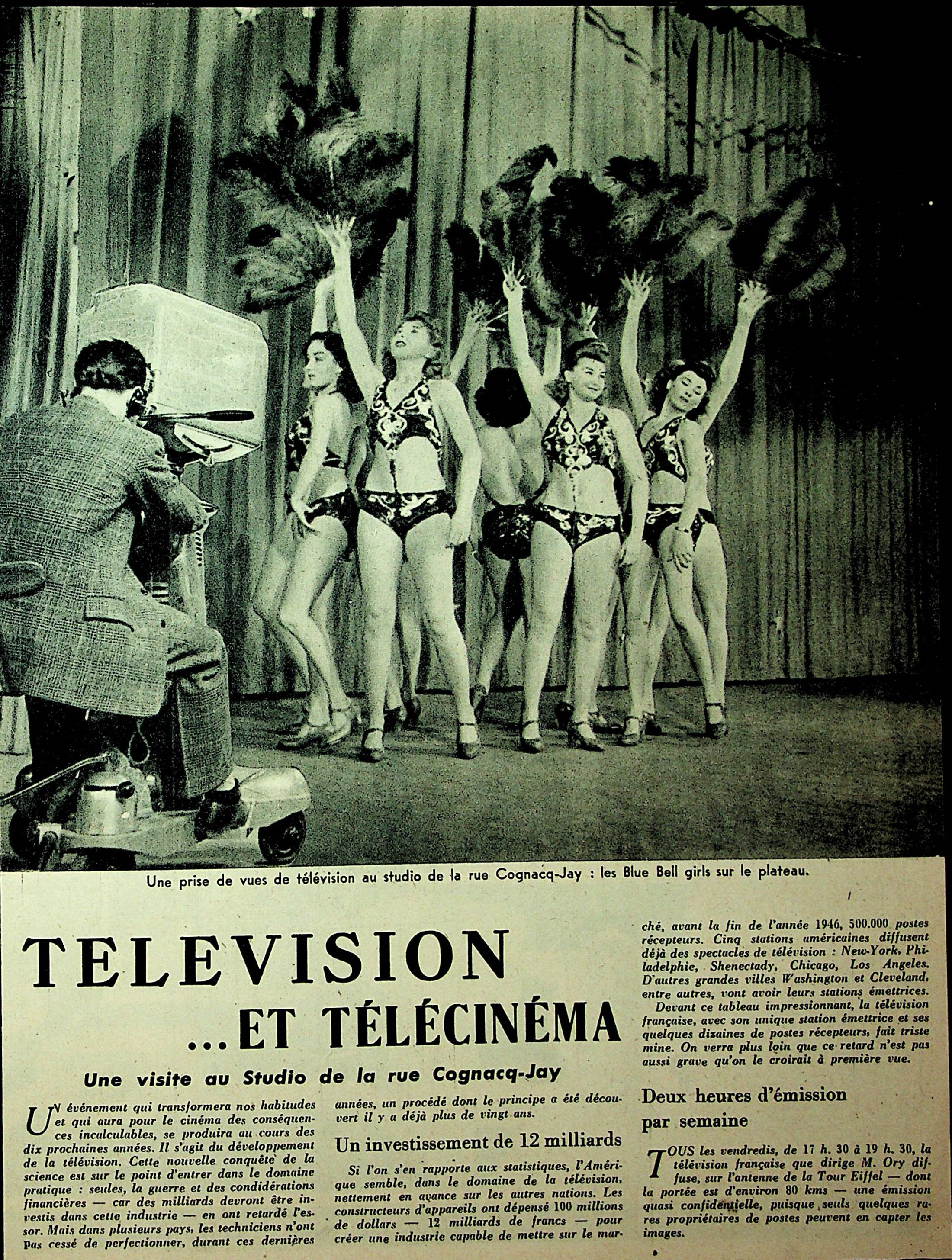 Une visite au studio de la rue Cognac Jay / sur la photo, en studio : les BLUE BELL GIRL (un peu étonnant pour le lancement de la télévision "française" !))