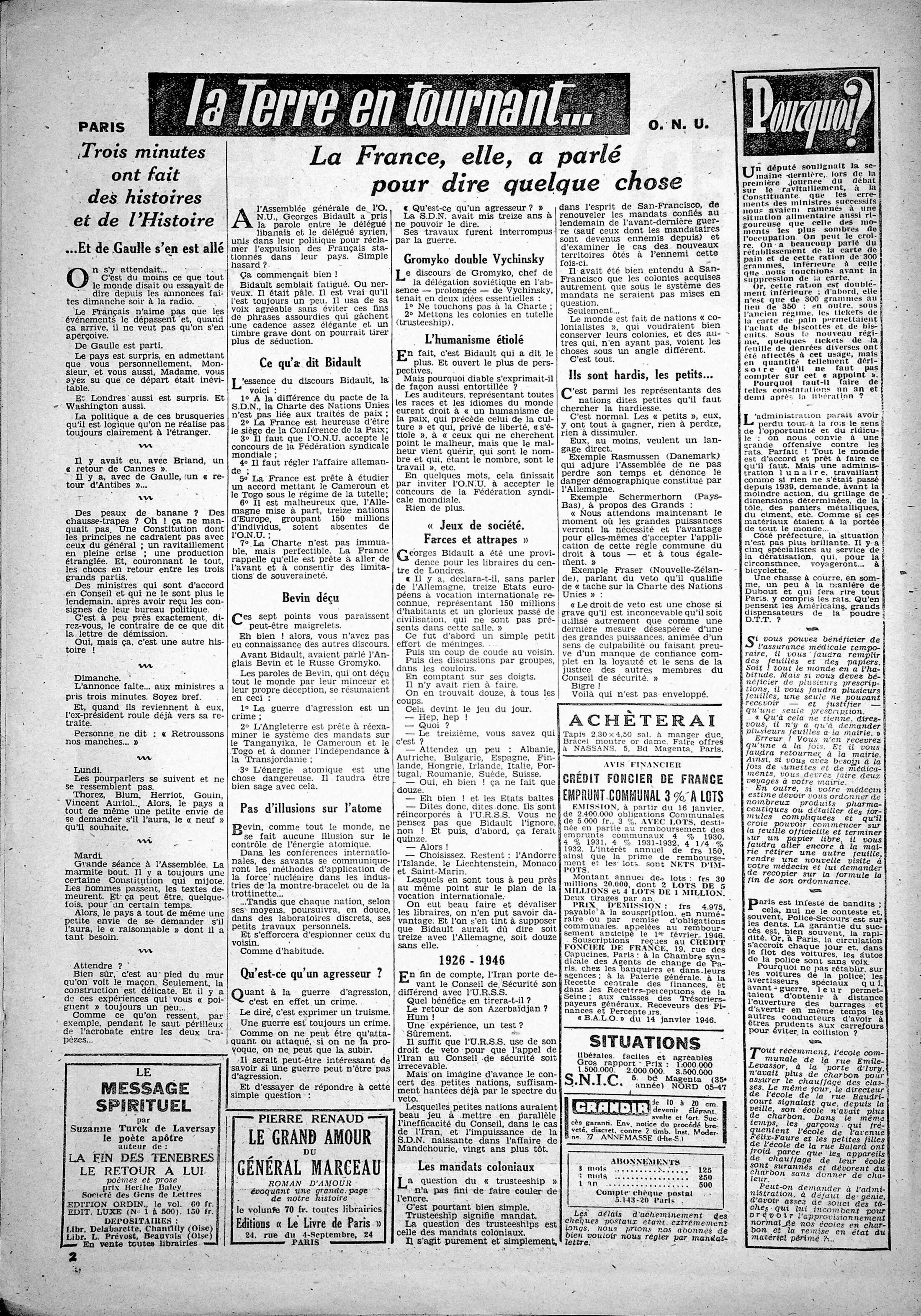 De GAULLE aurait pu - aurait du - faire la Une : il vient de démissionner (sans tambour ni trompette) du poste de chef de gouvernement. Non, ce sont PETIOT, CERDAN, IBN-SEOUD (et son harem) qui ont les honneurs de la première page