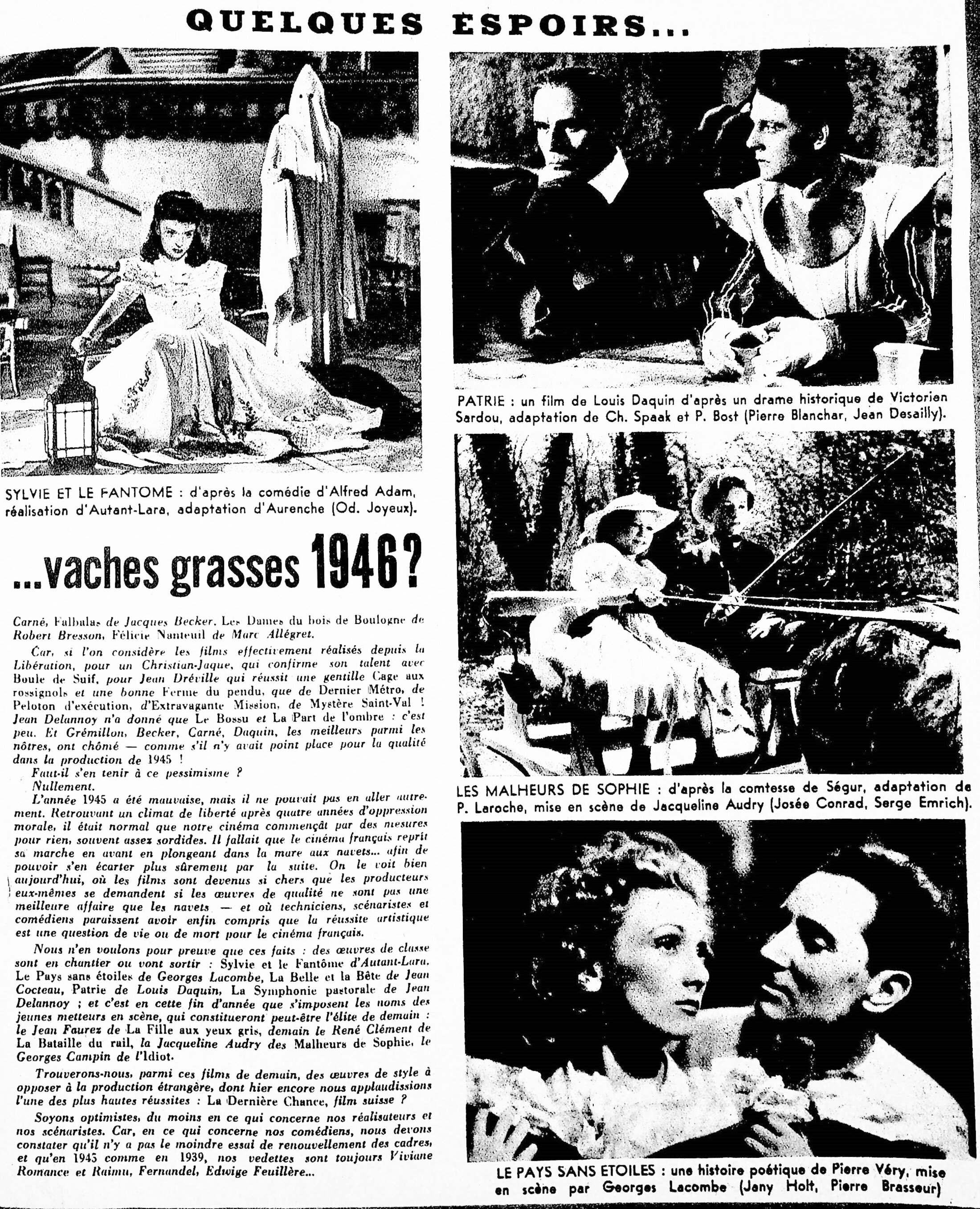 Quelques espoirs : Sylvie et le fantôme de AUTAN-LARA / Patrie de DAQUIN / Les malheurs de Sophie de Jacqueline AUDRY / Le pays sans étoile de Pierre VERY
