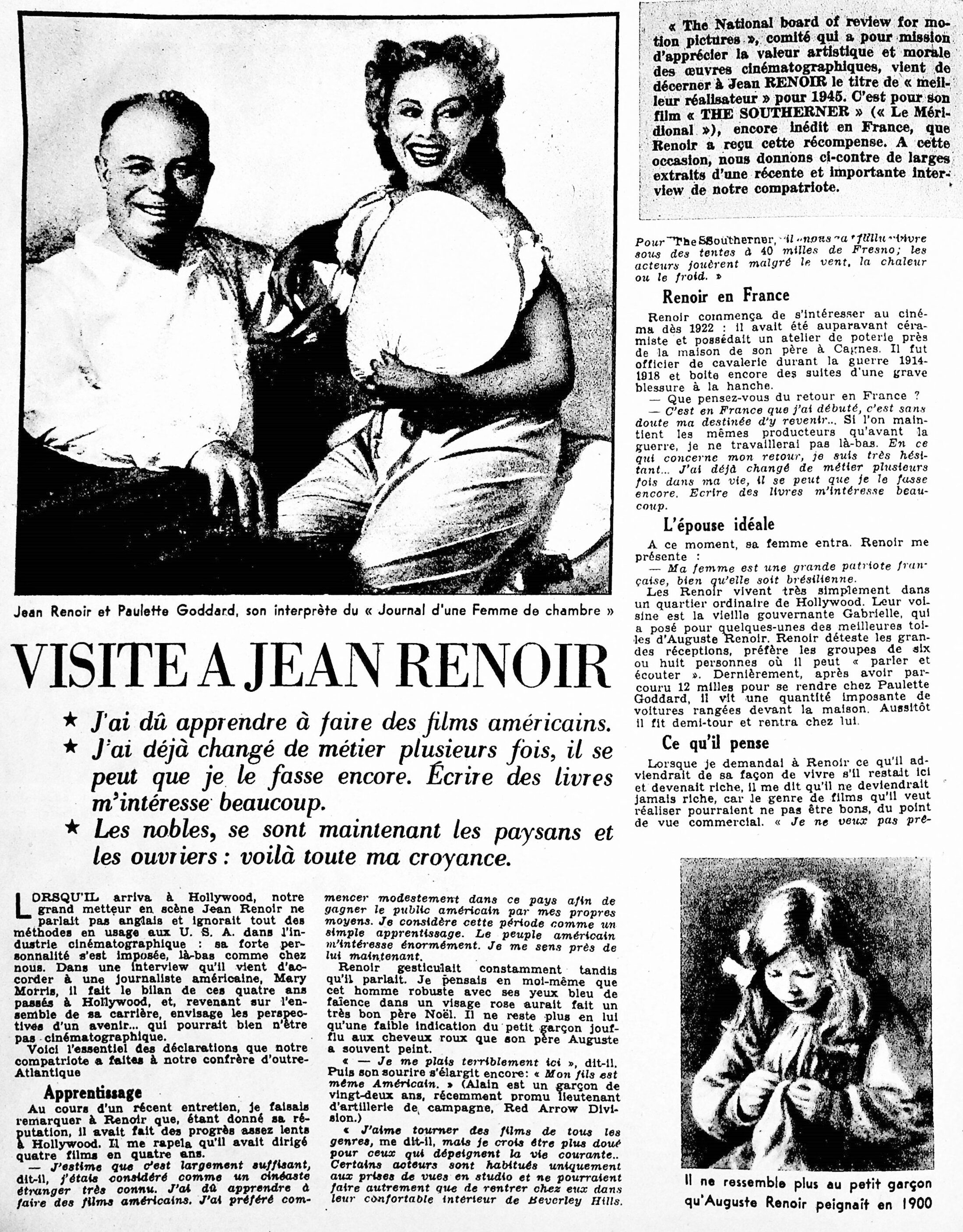 Visite à Jean RENOIR aux USA : "Les nobles, ce sont maintenant les paysans et les ouvriers." Voir aussi un portrait du petit Jean RENOIR peint par son père Auguste RENOIR.