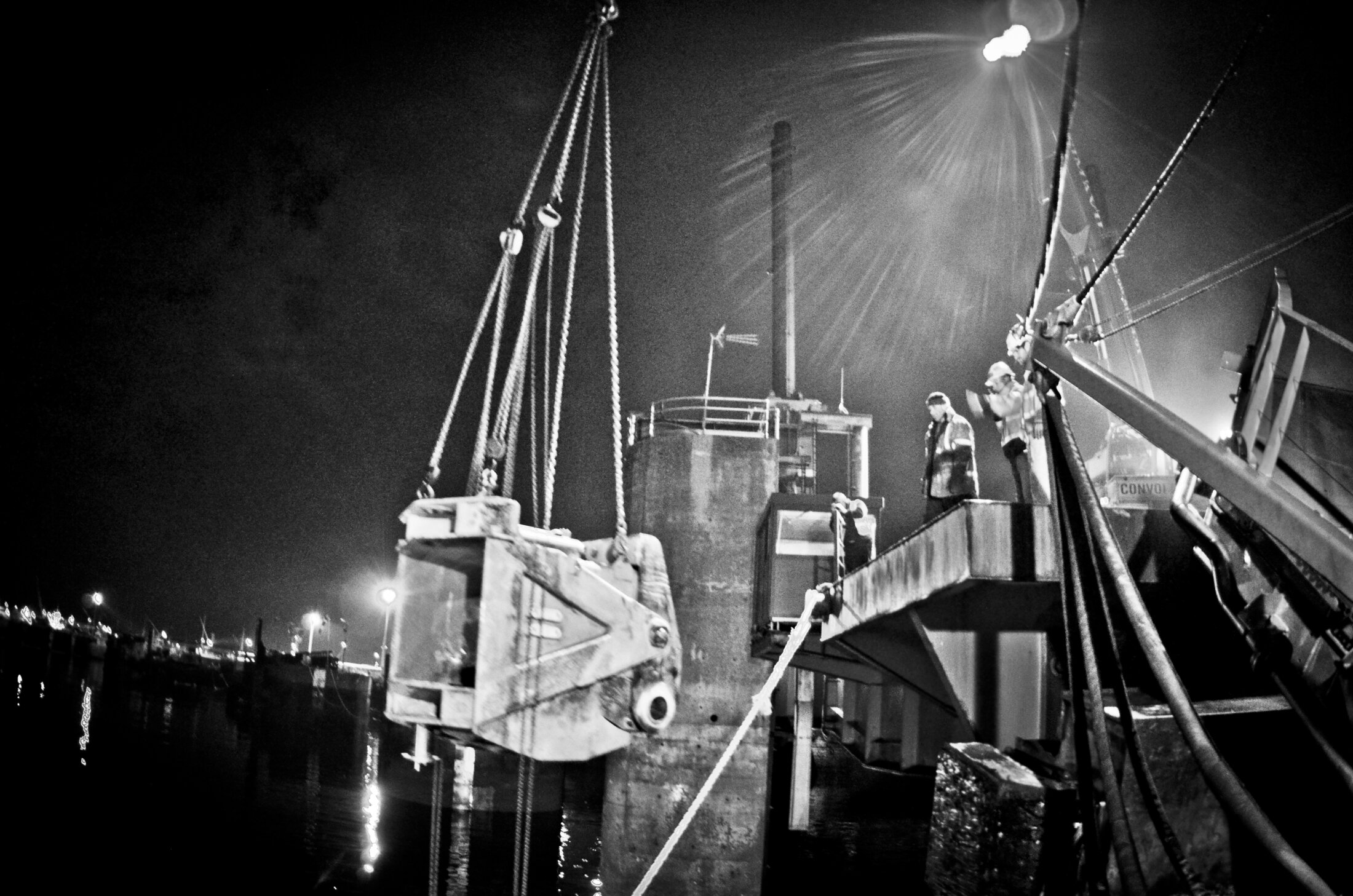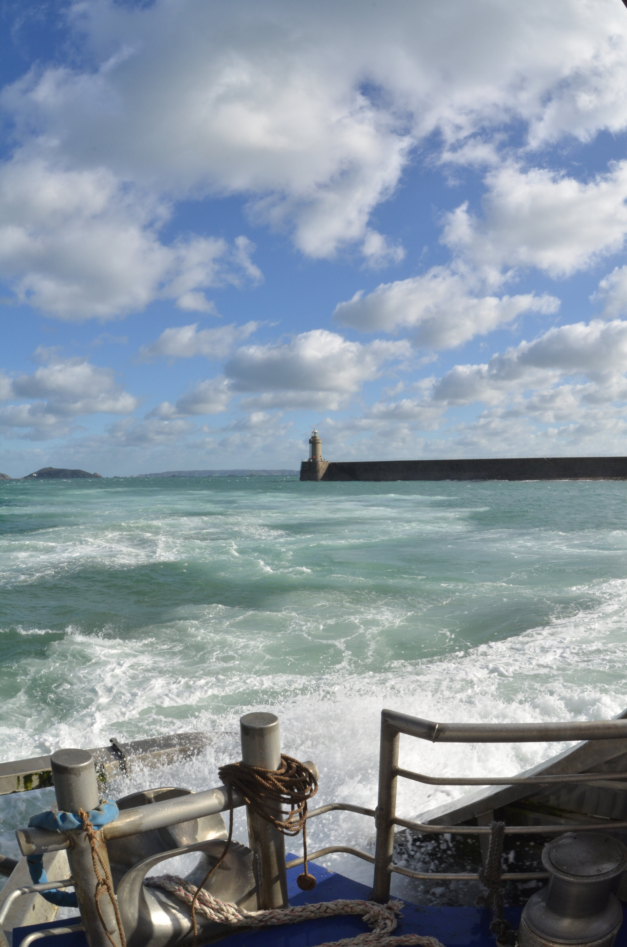 Arrivée de nuit au port de Saint Hélier "la capitale" de l'île de Jersey. En ce mois de novembre un fort vent d'est rend l'accostage difficile, la température est quasiment glaciale.