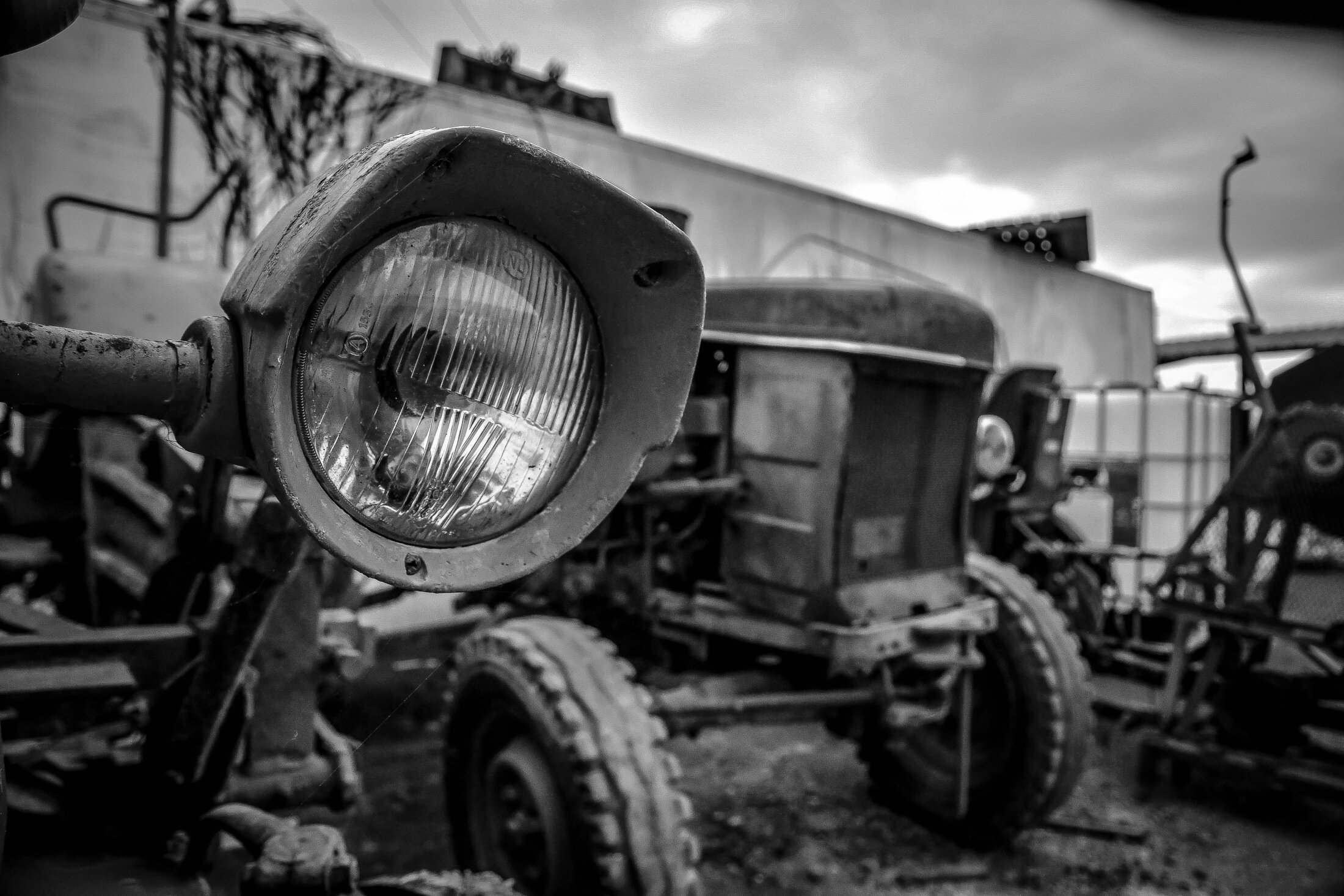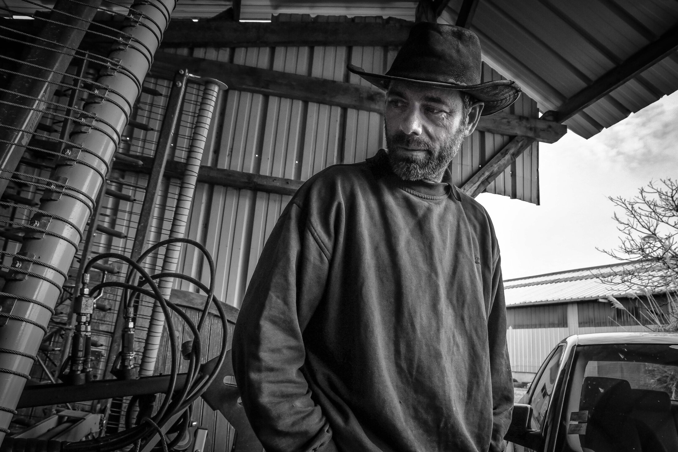 Il y a plusieurs tracteurs sur cette exploitation de 15 hectares, mais ces deux là sont conservés pour les pièces, ici rien ne se jette.