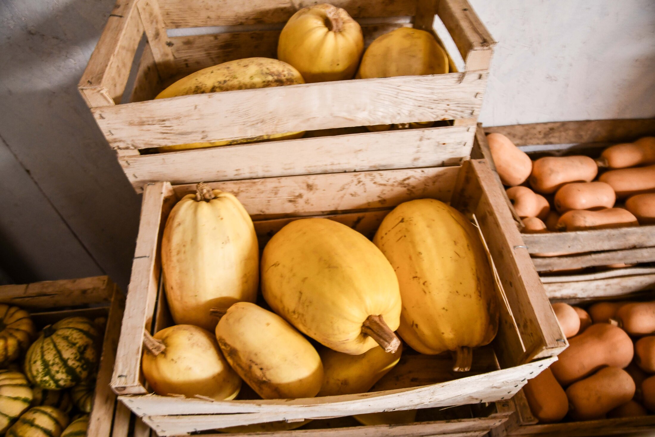 Il y a trois chambres froides sur la ferme, dans celle-ci on stocke les courges.