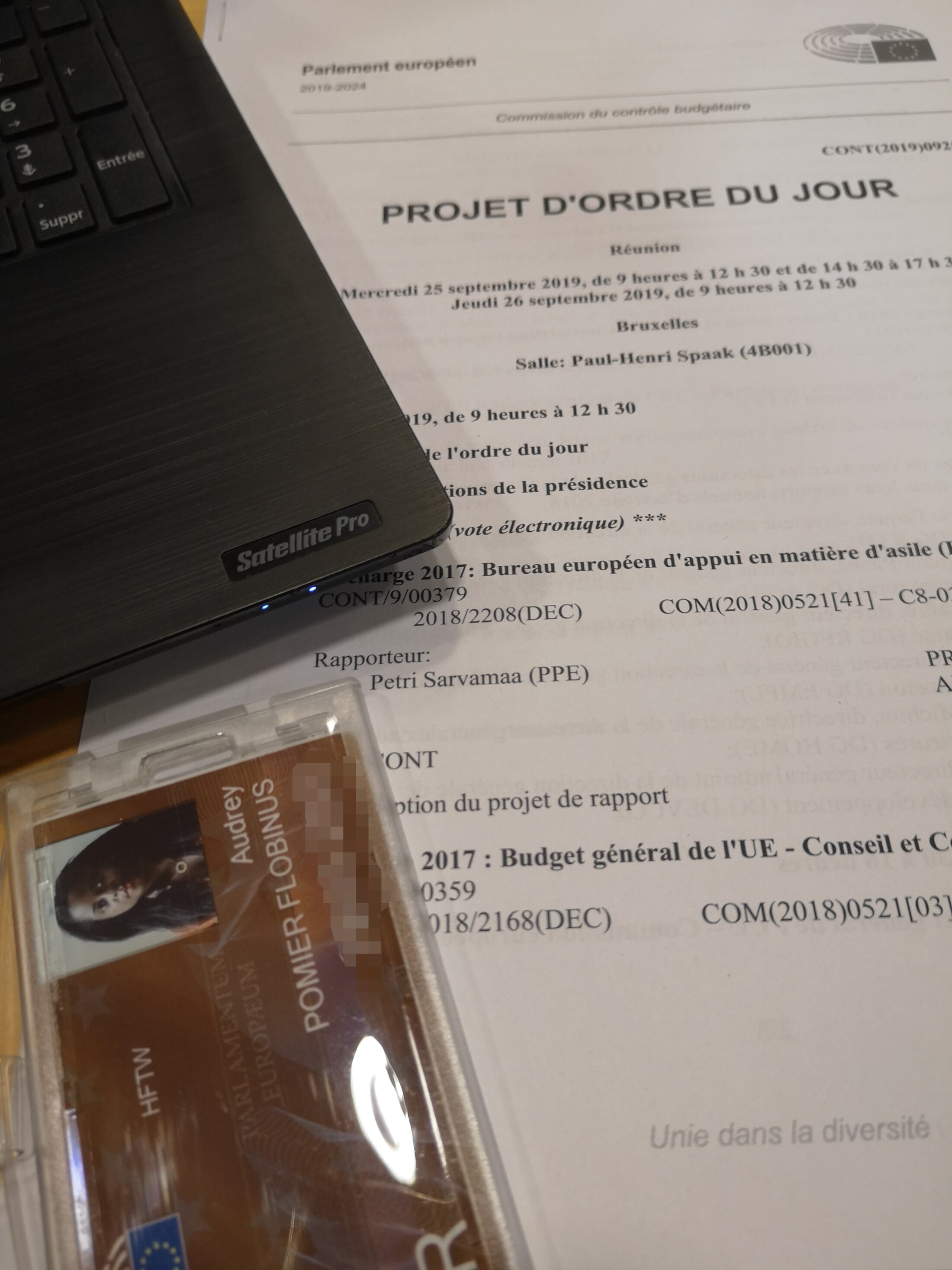 Mercredi 25 Septembre 2019, Humanity For The World (HFTW) (Dr.h.c Audrey POMIER FLOBINUS et Gérard FELVIA),un lobby humanitaire présent au vote par la Commission Européenne du budget général de l'Union Européenne 2019-2024, salle Paul Henry Spaak.