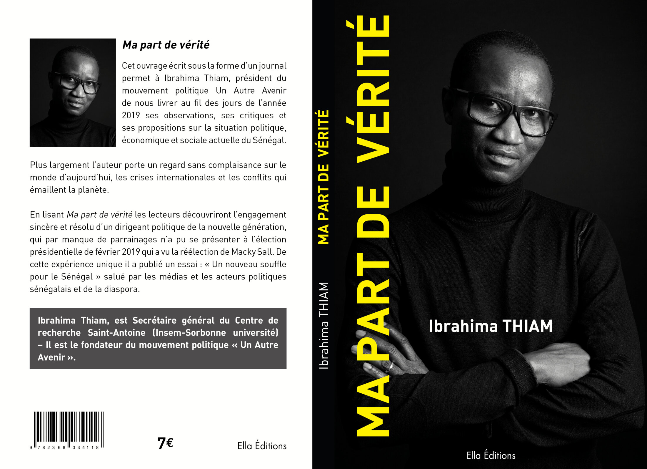 Écrit sous la forme d’un journal que s’est astreint à rédiger au jour le jour son auteur, “Ma part de verité” constitue, en dehors d’un passage intimiste, une chronique consacrée à l’analyse de l’actualité politique au Sénégal et dans le monde durant l’année 2019. Dans ce livre Ibrahima Thiam porte également un regard aigü sur certains sujets sensibles que les hommes politiques évitent généralement soigneusement.