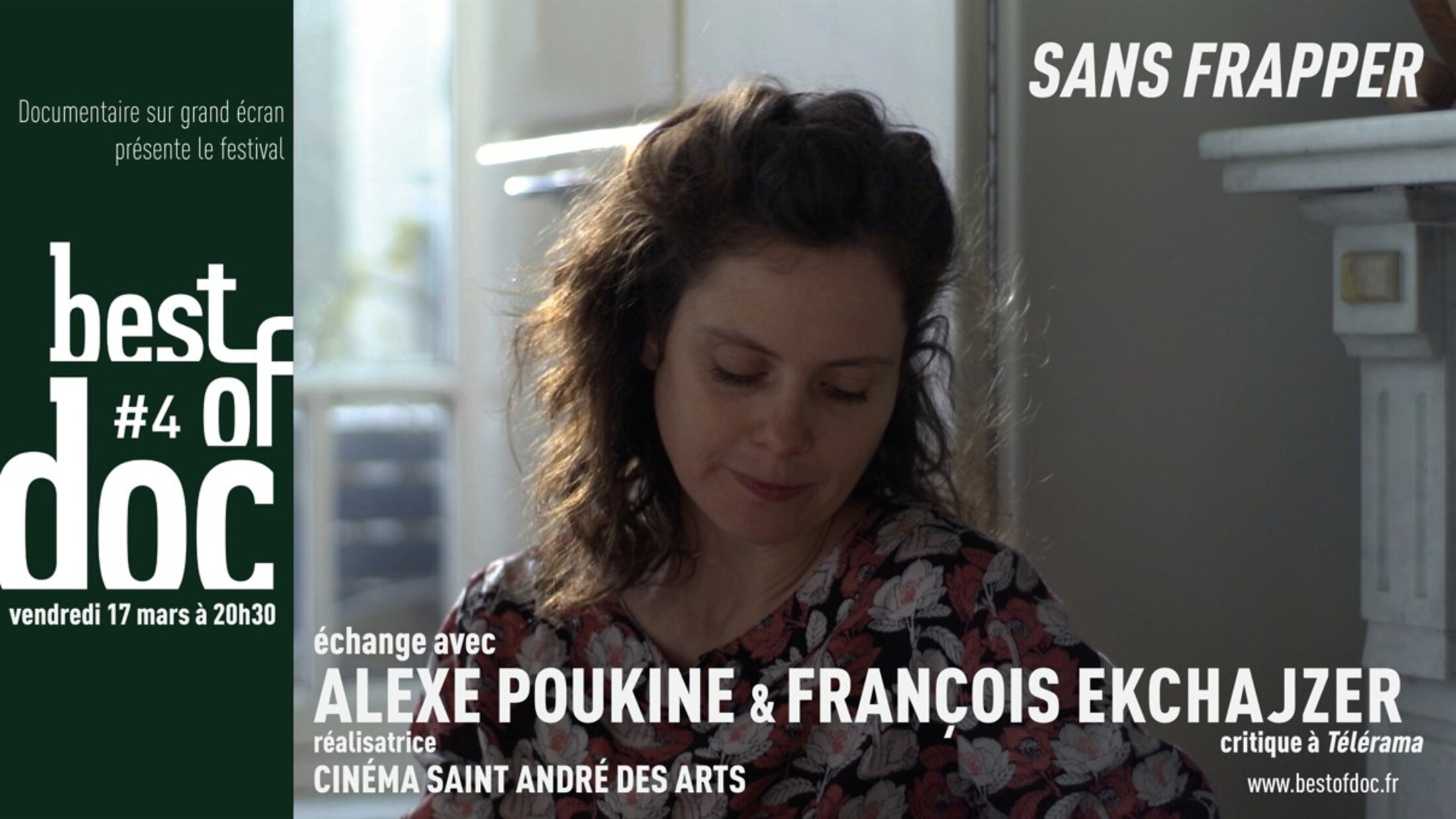 Le festival BEST OF DOC revient pour une quatrième édition ! À cette occasion, vendredi 17 Mars à 20H30, projection exceptionnelle du long-métrage documentaire de Alexe Poukine SANS FRAPPER !