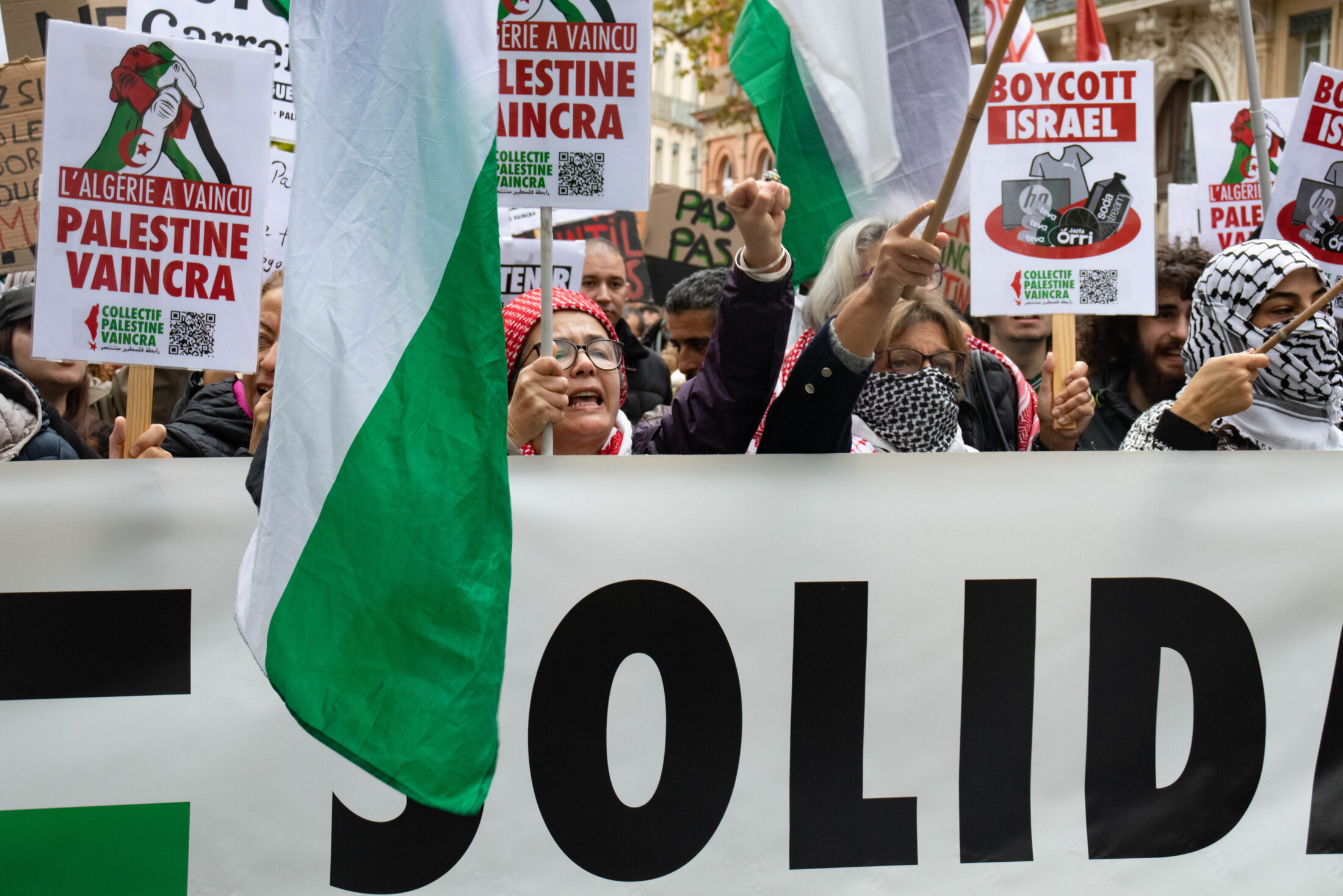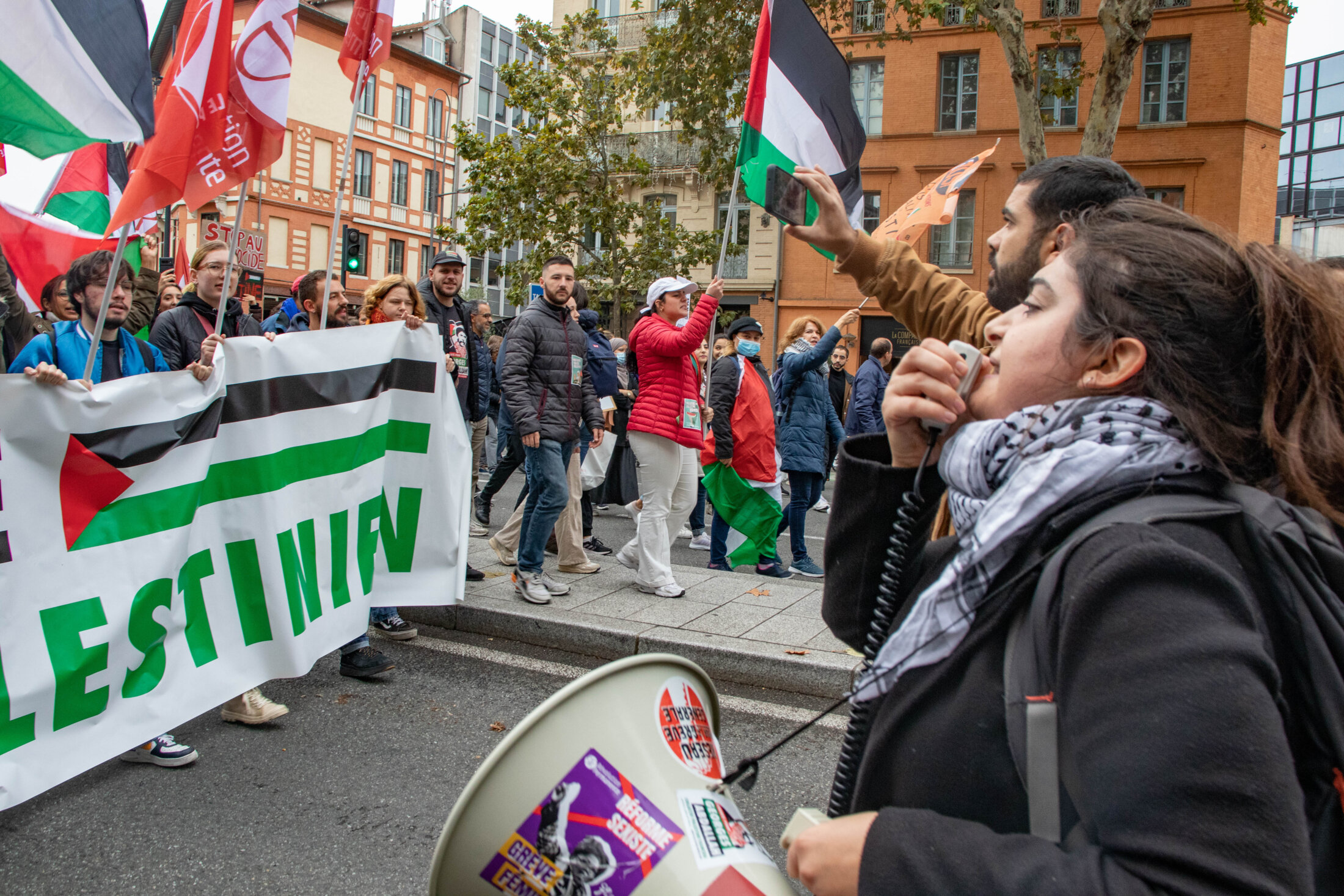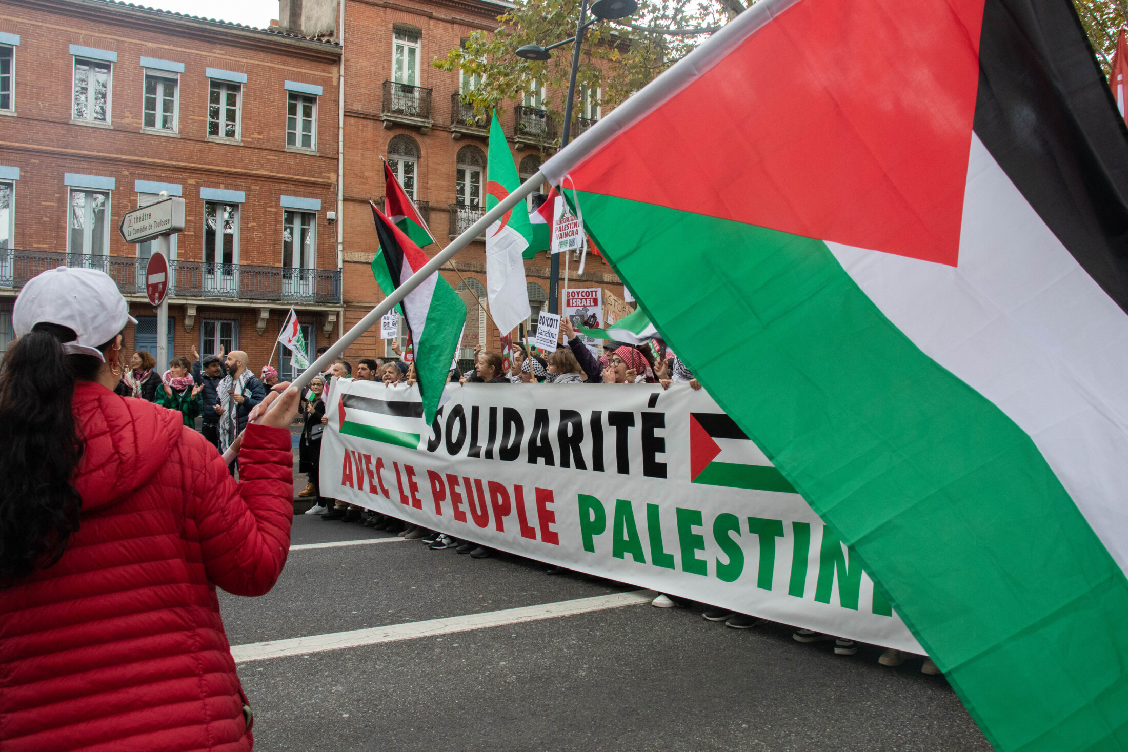 Des drapeaux palestiniens ont habillés le centre-ville de Toulouse samedi 11 novembre