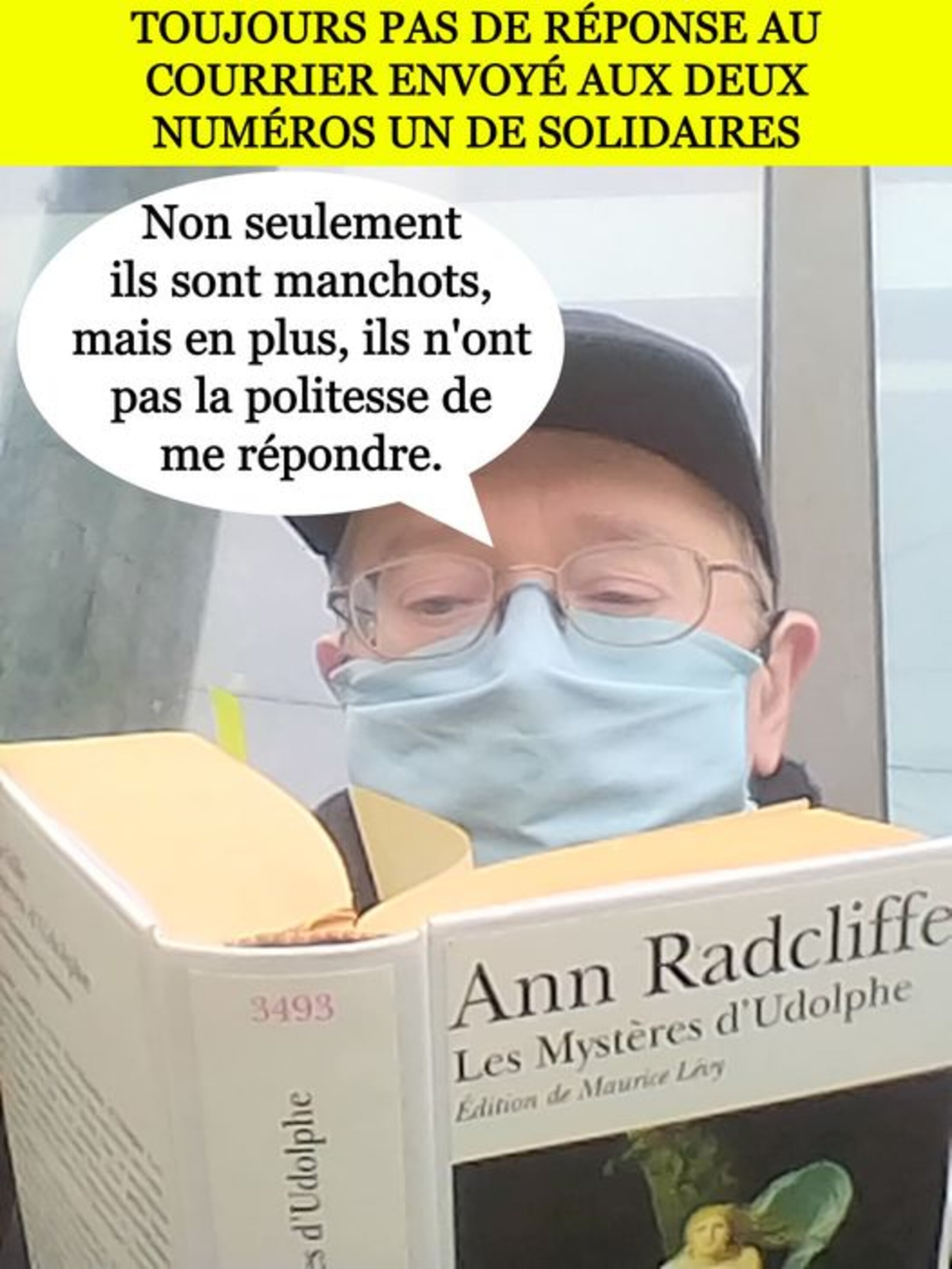 Comme je te l'avais expliqué en novembre, ô lecteur, j'avais envoyé un courrier recommandé AR aux deux nouveaux délégués généraux, Simon Duteil et Murielle Guilbert dans lequel je demandais – comme je l'avais demandé naguère à leurs prédécesseurs, Eric Beynel et Cécile Gondard-Lalanne –, que l’on m’informât des raisons pour lesquelles Solidaires avait soutenu et soutient encore ceux qui votent le licenciement des salariés protégés, ceux qui arrêtent la lutte à l'unanimité de leur unique voix, ceux qui refusent de tenir leurs propres engagements pris devant les salariés (en l'occurrence, mettre la pression au Conseil Départemental si des travailleurs de Ressources n’étaient pas repris par les repreneurs). À ce jour, je n'ai toujours pas obtenu de réponse.