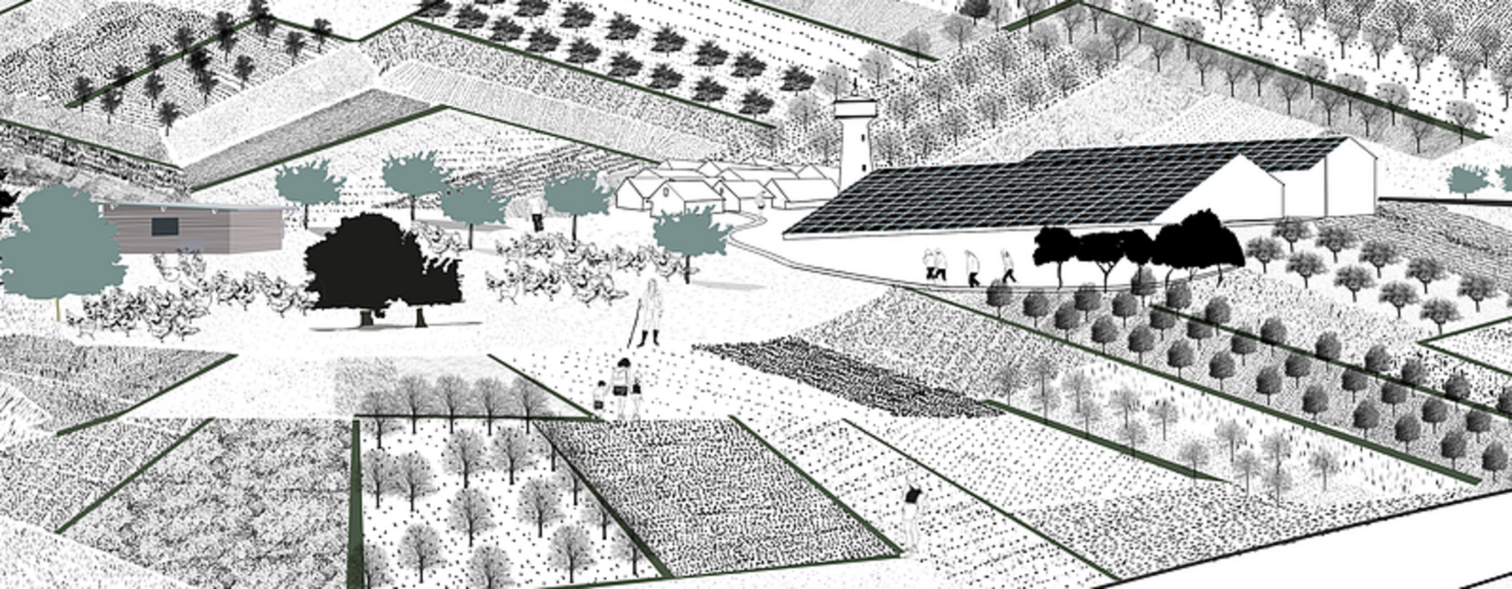 Mise en image par Initial Paysagistes du scénario prospectif Afterres2050 pensé par SOLAGRO et visant à imaginer un futur agricole et alimentaire.