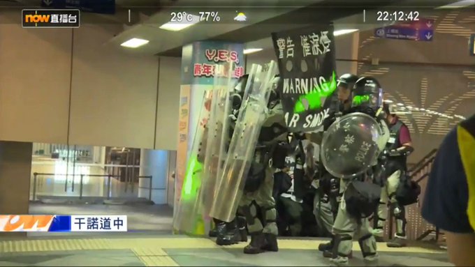 Samedi 28 juillet, des centaines de milliers de Hongkongais ont manifesté dans le quartier d’affaires de Sheung Wan contre le gouvernement. À la nuit tombée, des affrontements ont éclaté entre manifestants et forces de l’ordre, qui se sont échangés projectiles et cartouches de gaz lacrymogène. Des manifestants ont également pointé des rayons lasers bleus et verts en direction de la police, irradiant les nuages de gaz, une pratique "sortie des films de science-fiction" selon certains internautes.