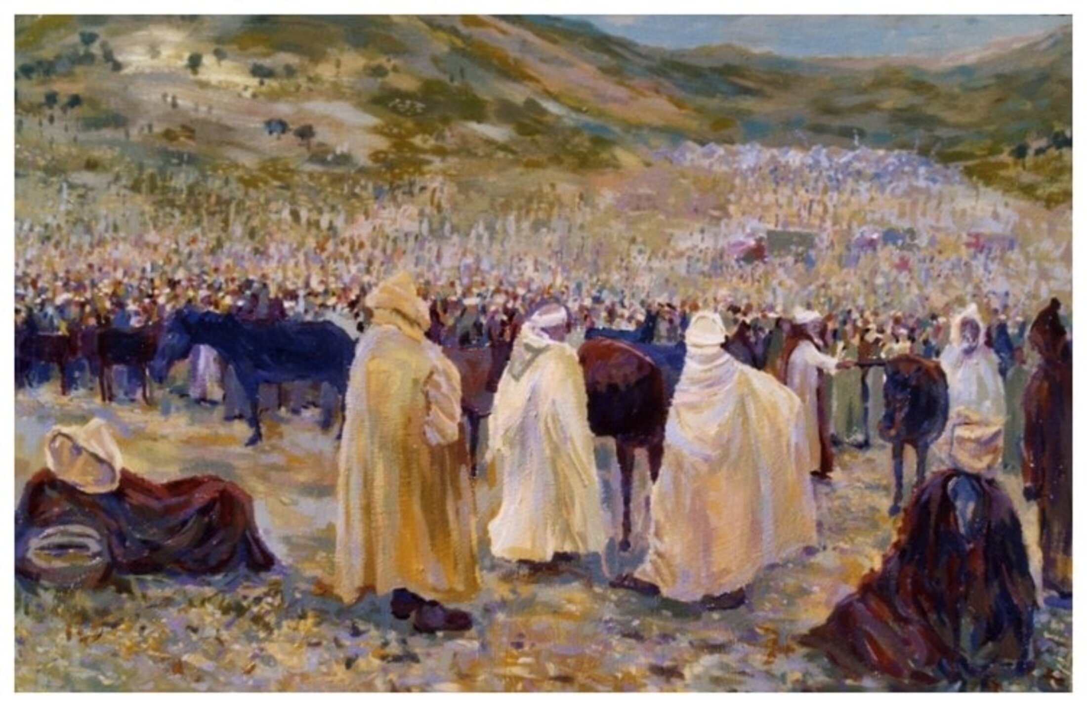 En fait cette histoire m’en rappelle une autre, celle d'un client d'un certain âge qui m'avait acheté un tableau en 2007, à Mulhouse, l’œuvre représente un paysage typique du Haut-Atlas inspiré du livre « Maroc, les montagnes du silence » du photographe Philippe Lafond. Par curiosité, je voulais savoir ce qui, dans ma peinture, avait particulièrement attiré cet alsacien et il m'avait répondu qu'elle exprimait le Maroc tel qu'il aimait le voir, avec ses mulets, ses ânes et des hommes vêtu de djellabas. C'était très intéressant car c'est avec le regard des autres que l'on découvre son propre pays.
