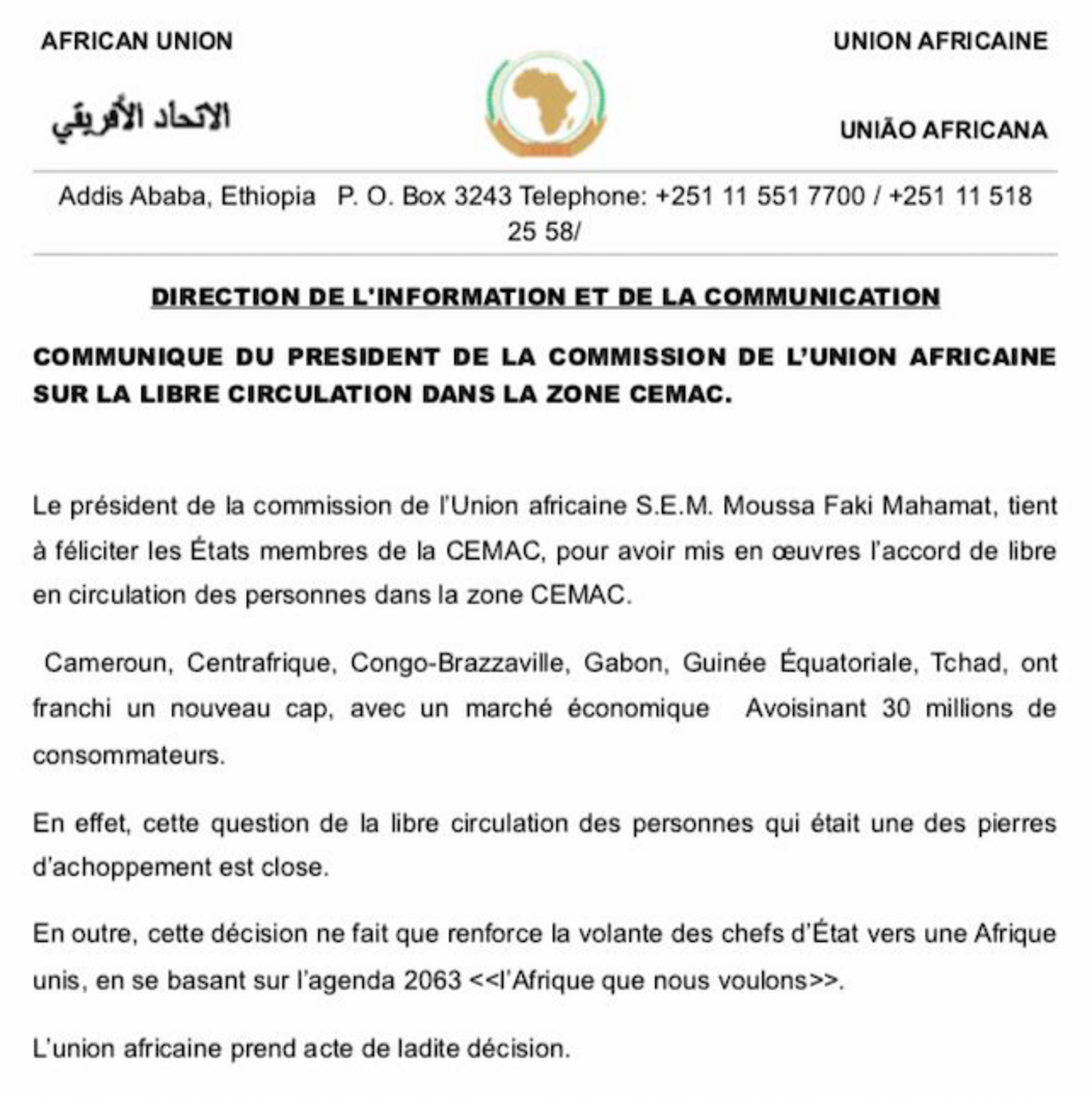 La question de la libre circulation est sur la table depuis des années en Afrique centrale : en 1972, l’ancêtre de la CEMAC avait déjà acté la libre circulation des personnes,