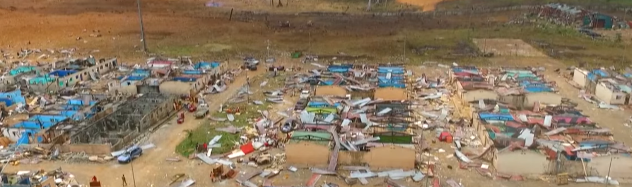 Une vue aérienne des dégâts filmée avec un drone montre l'amplitude de cette catastrophe impardonnable pour le pouvoir en place.