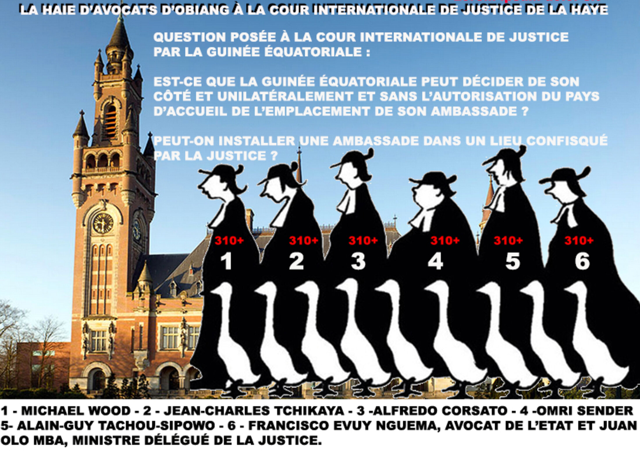 Si l'on ajoute la condamnation rendue cette année par la COUR INTERNATIONALE DE JUSTICE, qui a mis à néant les prétentions d'immunité du fils OBIANG et celles de son père concernant la soi disant ambassade de la république de guinée équatoriale dont les prétentions on† été balayées, lorsque l'on sait la manière dont fonctionnait cette ambassade dans la vidéo qui a été réalisée sur les réseaux sociaux et que la COALITION CORED a eu la bonne idée d'adresser au Président de la CIJ, on constate que la famille OBIANG encombre les tribunaux nationaux et internationaux et qu'à chaque fois ils se font débouter après des années de procédure et des frais d'avocats qui atteignent des sommets.