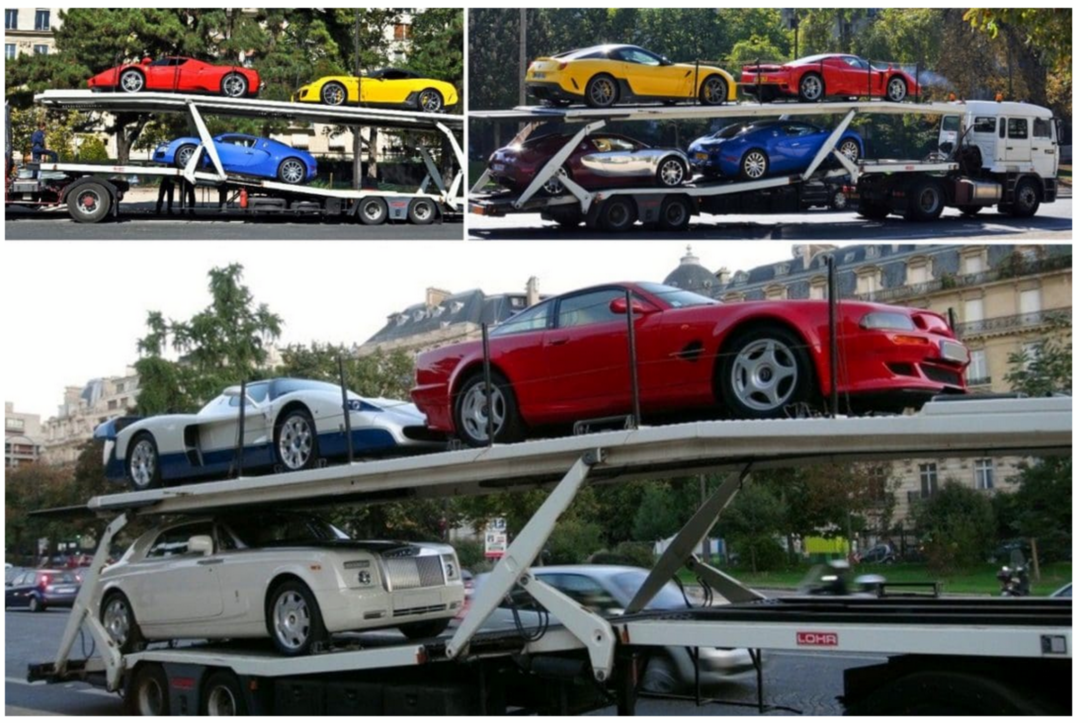 on cite : Lamborghini Veneno LP750-4 Roadster, Koenigsegg One:1, McLaren P1, Bugatti Veyron, une Aston Martin One 77 et une Ferrari, ainsi que des Porsche et Maserati. En tête d’affiche on trouve la Lamborghini Veneno Roadster qui est estimée entre 4,5 et 5 millions d’euros pour cette Supercar produite à seulement à 9 exemplaires. La Veneno Roadster achetée par Teodorin Obiang est encore plus rare que rare, car elle porte les couleurs du drapeau italien et a été créée pour célébrer les 50 ans de Lamborghini.
