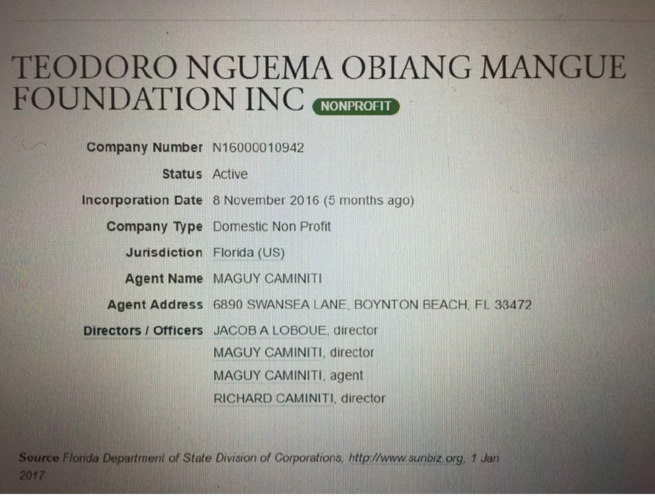 Cette Fondation "fantôme" a été créée de toutes pièces pour récupérer cet argent qui doit revenir au pays est dirigée par son responsable de la communication internationale JACOB LOBOUÉ qu'on a pu voir pendant longtemps à ses côtés organiser les distributions de jouets pour les enfants pour faire oublier les jouets d'adultes que TEODORIN s'offrait et qu'il a nommé à son insu directeur de la Fondation aux États-Unis