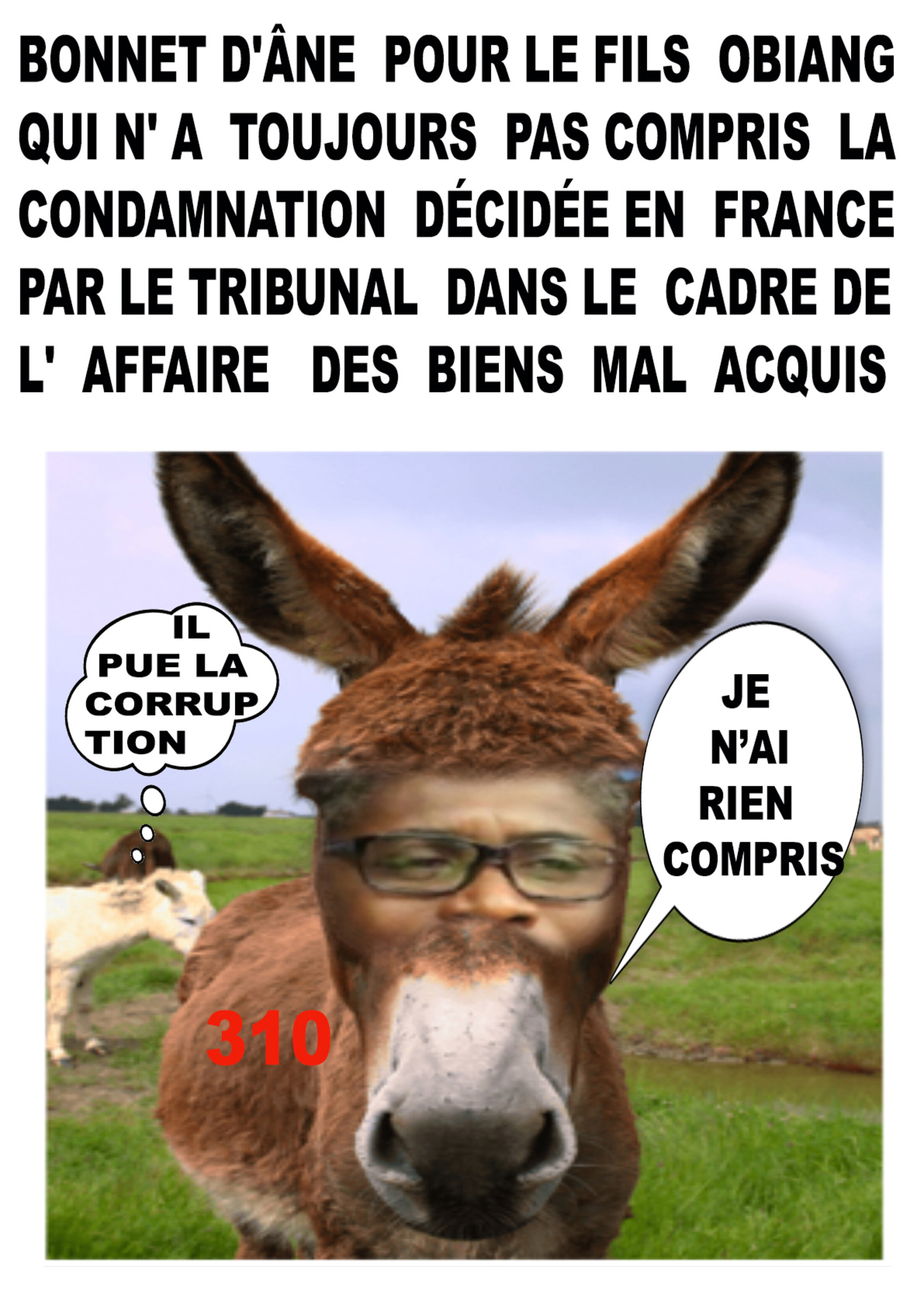 Faut il rappeler que le fils OBIANG par ces manoeuvres de "plaider coupable a selon le tribunal correctionnel de Paris "renoncé à 30 millions de dollars d'avoirs aux Etats-Unis qu'il a acquis avec de l'argent issu de la corruption et du blanchiment d'argent, en violation des lois américaines et équato-guinéennes";