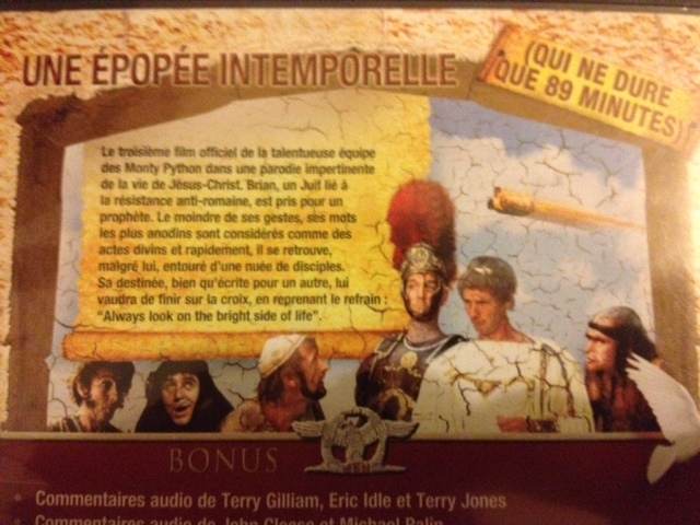 Eh bien, si vous voulez vous changer les idées alors il est temps de voir ou de revoir LA VIE DE BRIAN (1979) des célèbres anglais Monthy Pythons qui sévissaient de leur humour ravageur et déjanté dans les années 1970-1980...