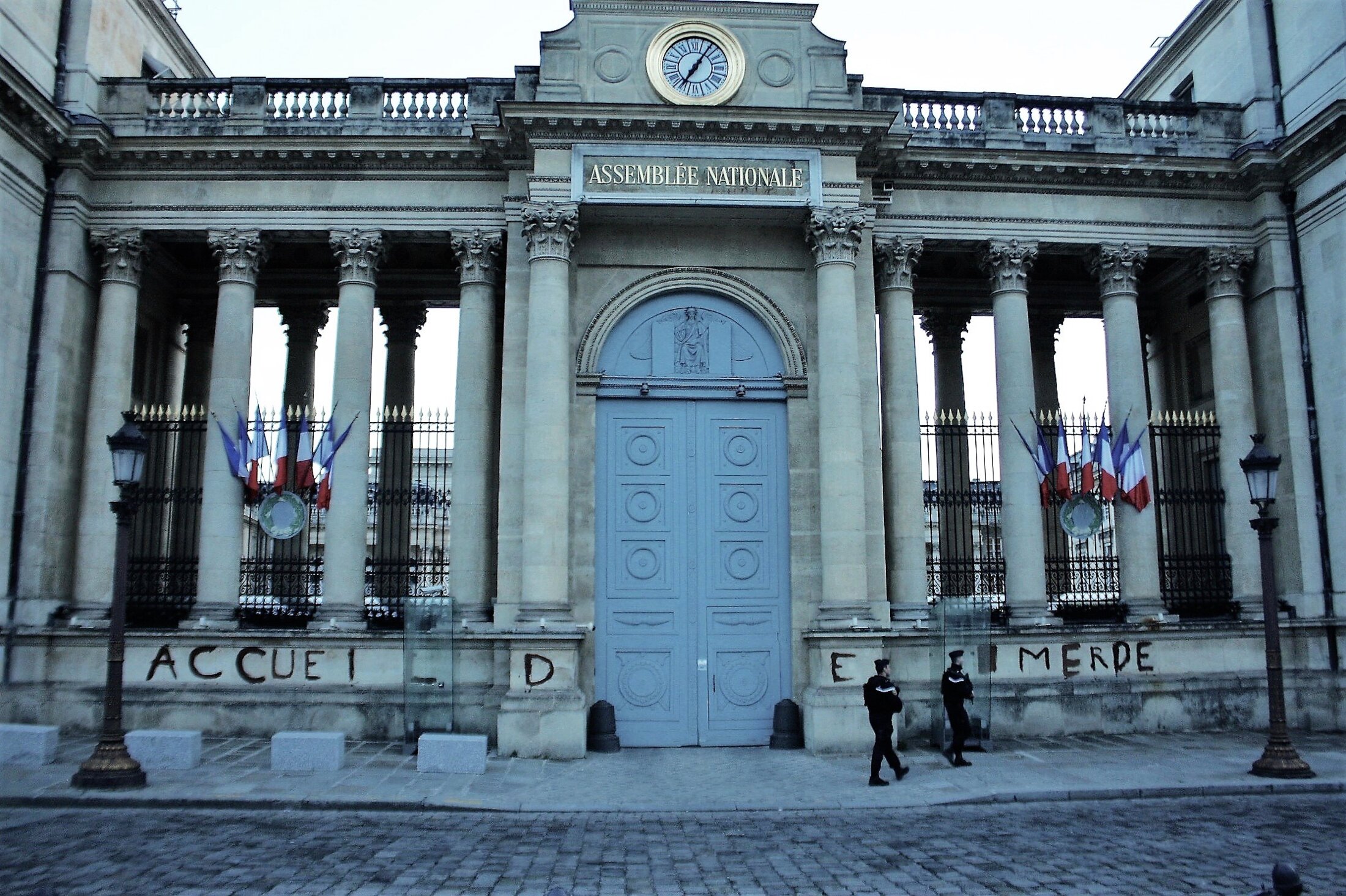 Samedi 14 avril 2018, à 7h du matin, des citoyen.ne.s solidaires ont inscrit « ACCUEIL DE MERDE » sur l’entrée monumentale de l’Assemblée Nationale avec de la mousse au chocolat. Cette action dénonce la politique de tri et d’expulsion des exilé.e.s mise en œuvre par le gouvernement, qui serait entérinée par le vote du projet de loi Asile et Immigration.