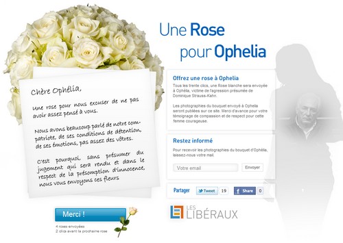 Bravo au collectif les Libéraux, et transmettons nos meilleures pensées à la victime présumée, "Ophélia" Nafissatou Diallo, en attendant que justice puisse être rendue.
