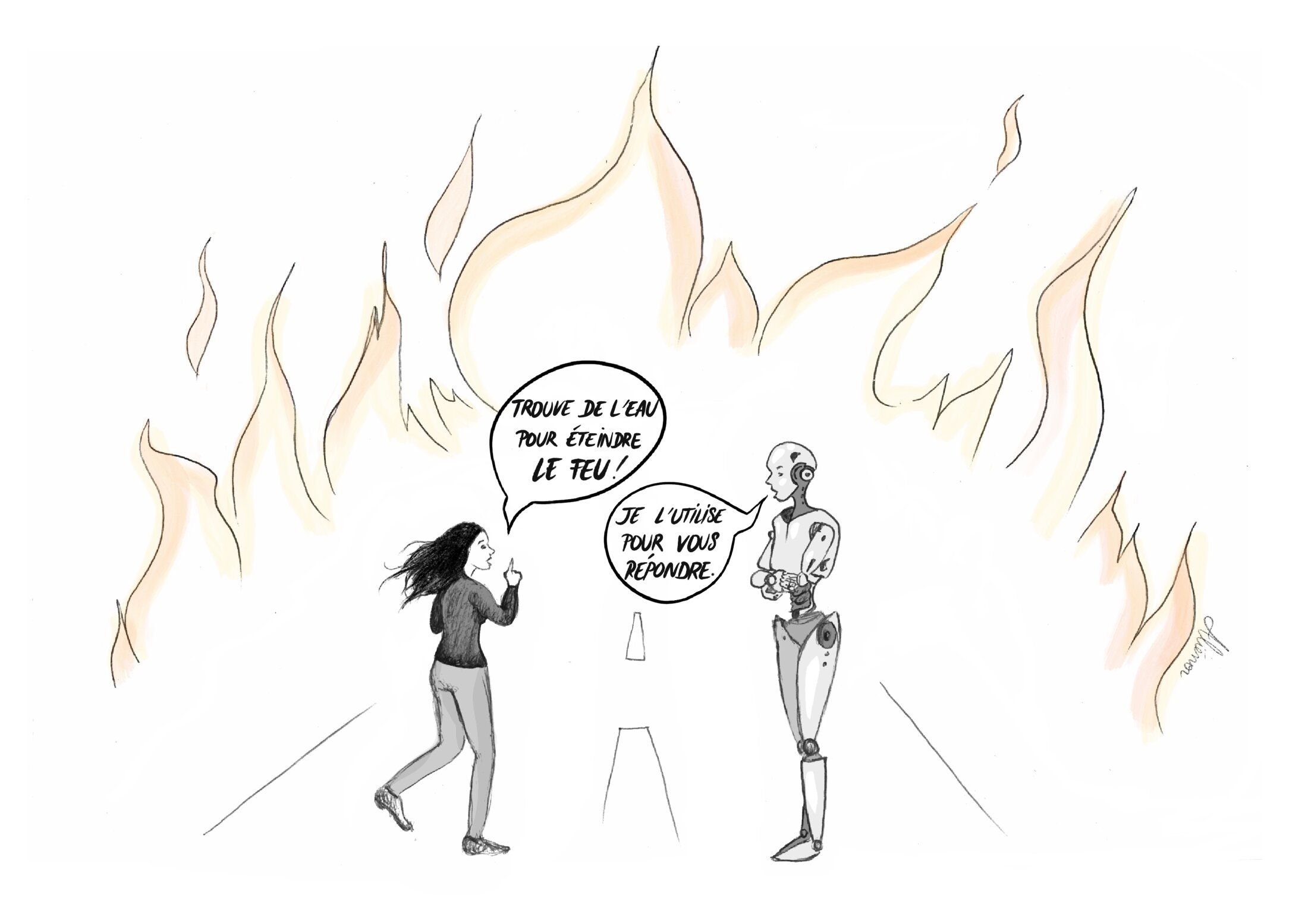 Les centres de données doivent maintenir une certaine température pour éviter toute surchauffe. Des tours de refroidissement sont utilisées pour refroidir les serveurs et par la suite, évaporent de l’eau froide. L’eau qui s’y échappe n’est pas récupérable. Pensez-y la prochaine fois que vous demanderez à l’intelligence artificielle de vous corriger un mail.