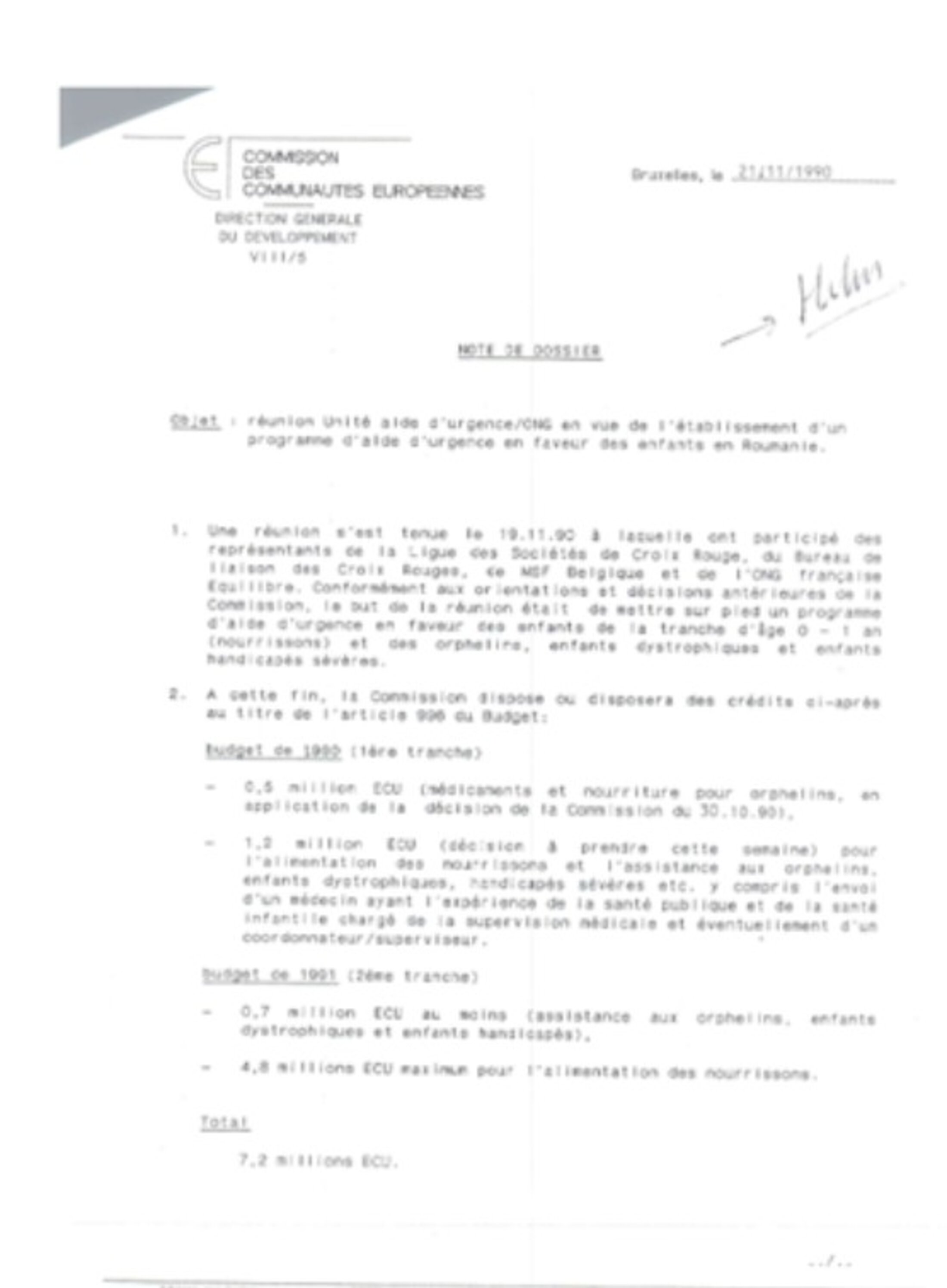 D’autres archives du cabinet Delors (déclassifiées en 2024 de 45 pages) révèlent que l'UE a alloué des millions d'ECU (Unité de compte européenne) pour l'aide aux orphelins roumains dès 1990 (budgets pour médicaments, nourriture, réhabilitation via ONG comme Croix Rouge et MSF) via le programme PHARE (Poland and Hungary: Assistance for Restructuring their Economies) étendu à la Roumanie en 1990, mais avec une coordination chaotique qui a ouvert la porte à des abus comme ceux de SERA.