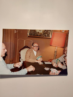 Maxime en pleine belote acharnée, avec les frères de Cécile, sa seconde épouse.