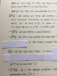 Ici, c'est un dictionnaire qui donne la racine du mot : "im" , qui signifie "avec". L'hébreu est une langue consonnantique (que des consonnes), qui s'est voyellisée plus tard (là, c'est le point en dessous de la première consonne, qui donne le son "i" ; la deuxième consonne est le "mem" qui donne le son du "m").