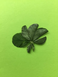Photo du verso pour un banal trèfle à 4 feuilles, trouvé au même endroit et durant la même promenade :