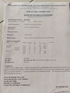 C'est une épreuve d'effort, effectuée chez et par le Docteur Carole DOSSETTO (une fille bien, normale), à Saint-Jean-de-Luz :