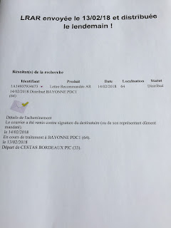 Une LRAR postée le 13 février 2018 sur la côte basque ...