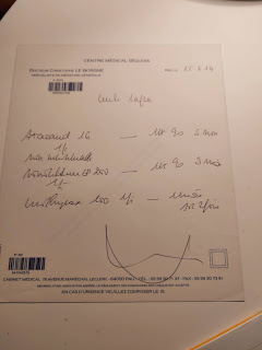 Son médecin généraliste traitant de Pau me donne une dernière ordonnance, avec son traitement du moment :