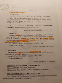 - Et carrément donation en 2009, à cette même Mademoiselle Anne GOUINGUENET (hors part successorale, comme si Agnès était morte, bravo le notaire !), de l'appartement dans lequel vivait Madame Cécile MAGNE, après y avoir vécu avec son époux Maître Maxime MAGNE (notaire = LOUSTALET à Pau).