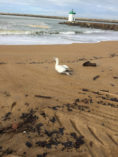 (pauvre Fou de Bassan, remis "au large" sur une plage mocharde, avec des vagues nauséabondes ...)