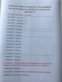 Là, il faut corriger. Car MT1 n'a rien fait de particulier durant les trois premiers mois du séjour d'Alexandre (fin décembre 2016, janvier-février et jusqu'à fin mars 2017), contrairement à ce que fait croire la facture de l'EHPAD E de janvier 2017.