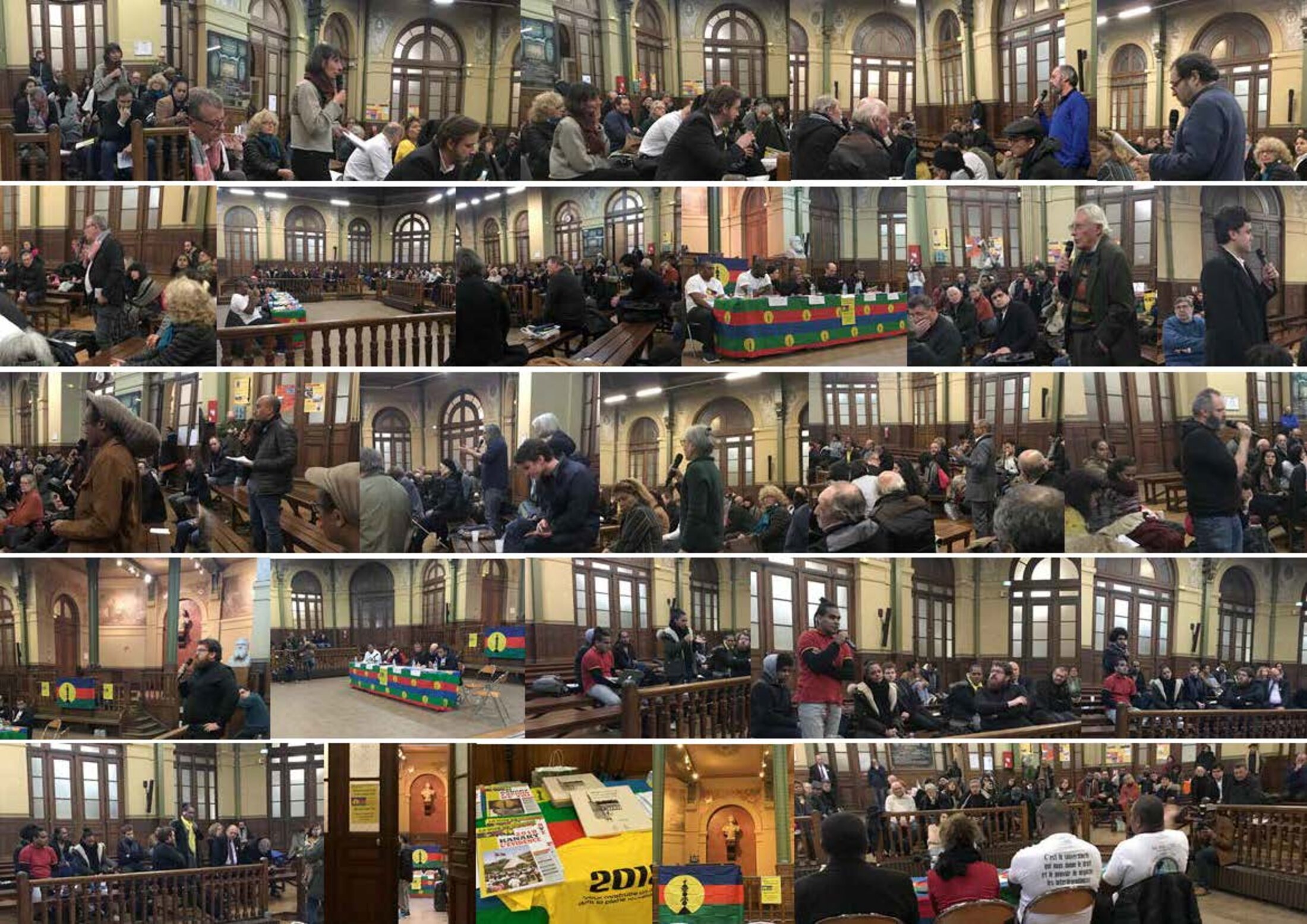 Il a été soutenu par les organisations suivantes : outre les organisateurs, Mouvement des Jeunes Kanak en France (MJKF) - Union Syndicale de Travailleurs Kanak et des Exploités (USTKE) - Collectif Solidarité Kanaky - Association Information et Soutien aux Droits du Peuple Kanak (AISDPK), nous comptons dans les premier signataires : Réseau syndical international de solidarité et de luttes - Union syndicale Solidaires - Confédération Nationale du Travail (CNT) - Union Générale des Travailleurs de Guadeloupe (UGTG) - Sindicatu di i Travagliadori Corsi (STC) - Langile Abertzaleen Batzordeak (LAB) - Réseau Sortir du colonialisme - Survie - Fondation Franz Fanon - Collectif Faty Koumba – Collectif ni Guerre ni Etat de Guerre - Centre d'études et d'initiatives de solidarité internationale/Initiatives Pour un Autre Monde (CEDETIM/IPAM) - Fédération des associations de solidarité avec tous-te-s les immigré-e-s (FASTI) – Collectif de Défense de l'Intégrité et de la Souveraineté des Comores - Alternative Libertaire (AL) - Ecologie sociale - Ensemble ! - Nouveau Parti Anticapitaliste (NPA) - Parti Communiste Français (PCF). Nombreux étaient ceux représentés dans la salle.