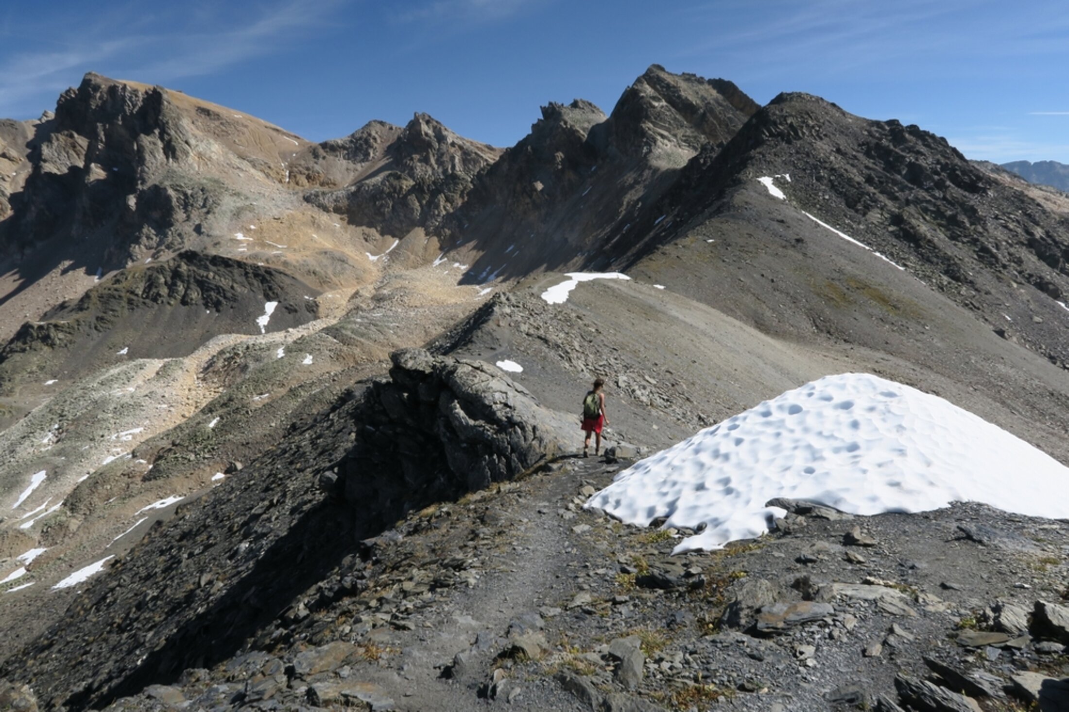 La sauvagerie saute aux yeux, même ceux d'un bigleux. Fraicheur retrouvée, camping d'altitude, torrents encore vivants, pin cembro, mélèze, pelouses encadrant les dalles de gneiss rouges et grises, lacs miroirs. Rumeurs des torrents, aboiements de chevreuil, cris de rapaces aussi. Petites grenouilles, troupeaux guettés par le loup invisible. Ce mouvement général des lieux, l'air, le chant des ruisseaux, le silence des casses gigantesques de blocs innombrables, l'histoire géologique étalée devant, dessous, au-dessus, le monde impacte le corps, il est en nous. On marche en calculant l'ombre des pentes, celle des arbres, car et ceci jusqu'à la fin de nos jours, il faut fuir les chaleurs, la canicule, même en septembre. Et c'est une chance inouïe de fuir la ville, l'épuisement des nuits impossibles, jambes lourdes, vertiges, malaises, l'étouffoir. Le soleil tape fort là-haut, mais le vent sur les crêtes sauve la mise, au premier nuage, ou plus radical encore, l'assise dans le lac, l'hypothermie redevient une hypothèse crédible.