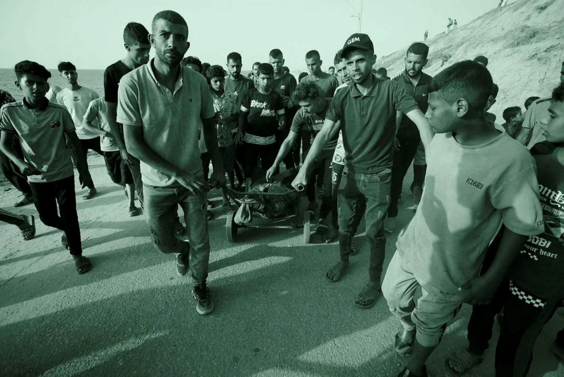 Des Palestiniens transportent des blessés après des frappes aériennes des FDI près du corridor de Netzarim, en mai. Crédit : Ashraf Amra / ANADOLU / Anadolu / AFP.