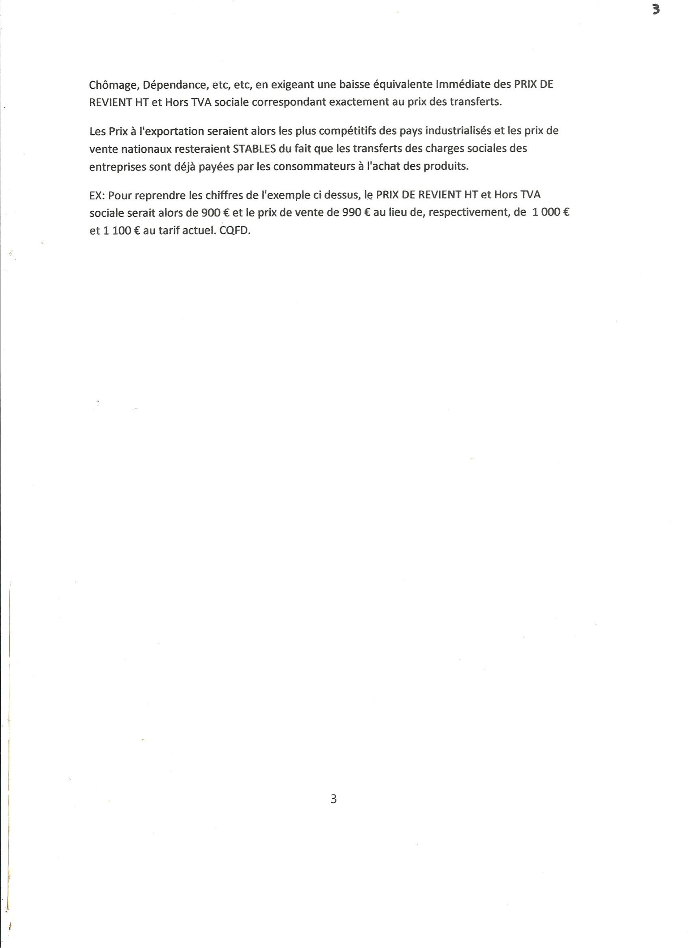 Le 16.08.2016, j'ai demandé officiellement à François Hollande, Président de la République, ainsi qu'à tous les candidats à l'élection présidentielle et aux Partenaires sociaux, par les réseaux Twitter et Facebook, de supprimer, en totalité, les cotisations-charges sociales des entreprises, et de les transférer sur une TVA sociale à créer, cela pour 2 raisons: