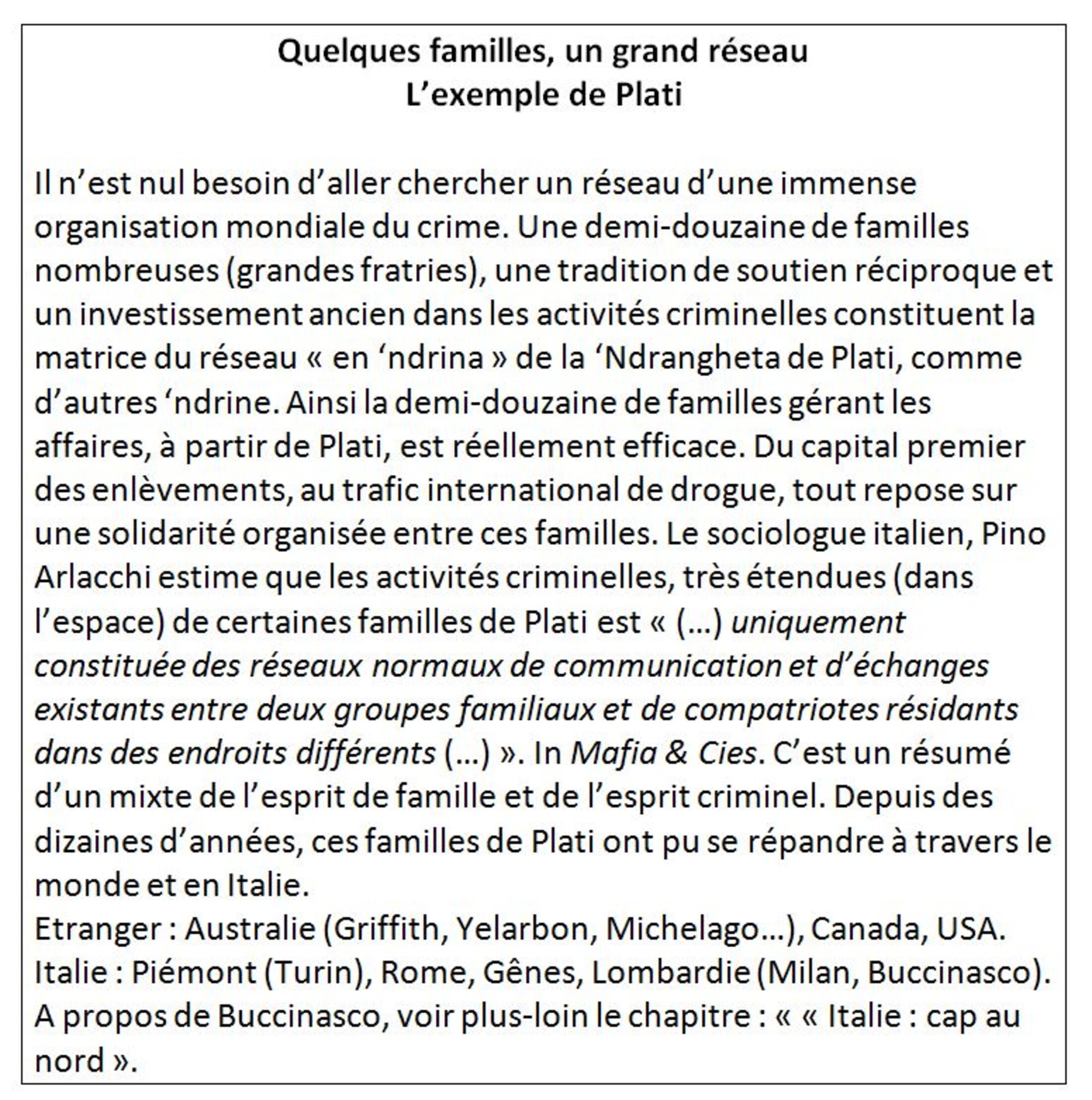 Cette affaire nous ramène aussi à la petite ville calabraise de Plati, liée à celle de Griffith (16 000 habitants.) en Nouvelle Galles du Sud. Cette dernière est, depuis les années vingt (20ème siècle), un lieu d’immigration d’origine calabraise.
