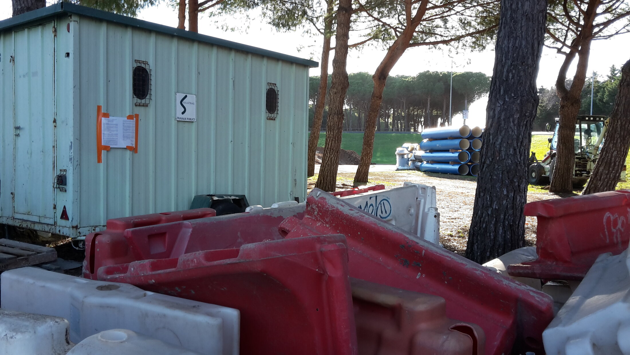 Regardez ces photos prises près de la bulle de l’office du tourisme du Cap D’Agde ! La restriction de trafic sur la route adjacente, le tas d’énormes tuyaux destinés à amener de l’eau, les baraques de chantier : tout montre que les premiers travaux d’aménagement de l’entrée du Cap ont démarré dès le début janvier 2016, sans doute pour amener de l’eau au futur nouvel emplacement du casino. Autrement dit, sans que le préfet ait donné son accord sur le plan local d’urbanisme, sans aucune information du public sur la finalité réelle des travaux (si ce n’est, loin de là, une affiche ambiguë faisant état d’une “rénovation du réseau d’eau”), le maire a entamé les travaux de son monstrueux “aménagement” de l’entrée du Cap, en toute illégalité…. Et bien sûr, pas un mot au conseil municipal d’il y a trois semaines sur ce début de la bétonisation. “Autocratie et bétonisation”, voilà ce qui pourrait être la devise de cette municipalité…