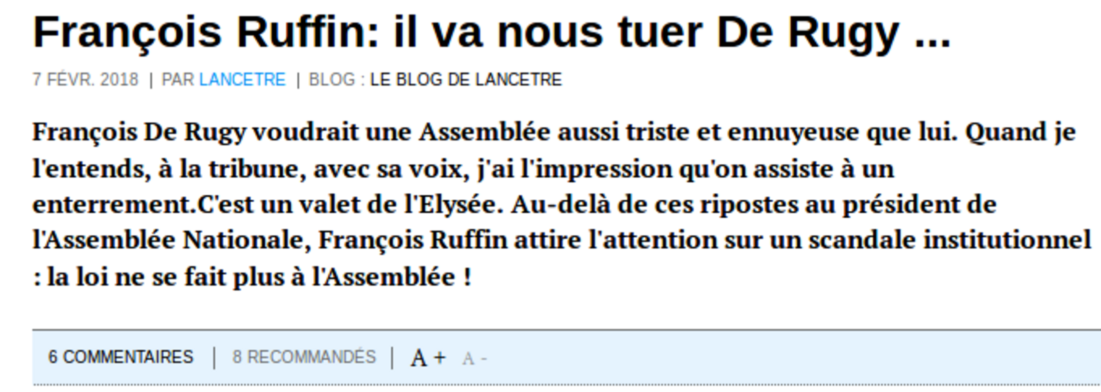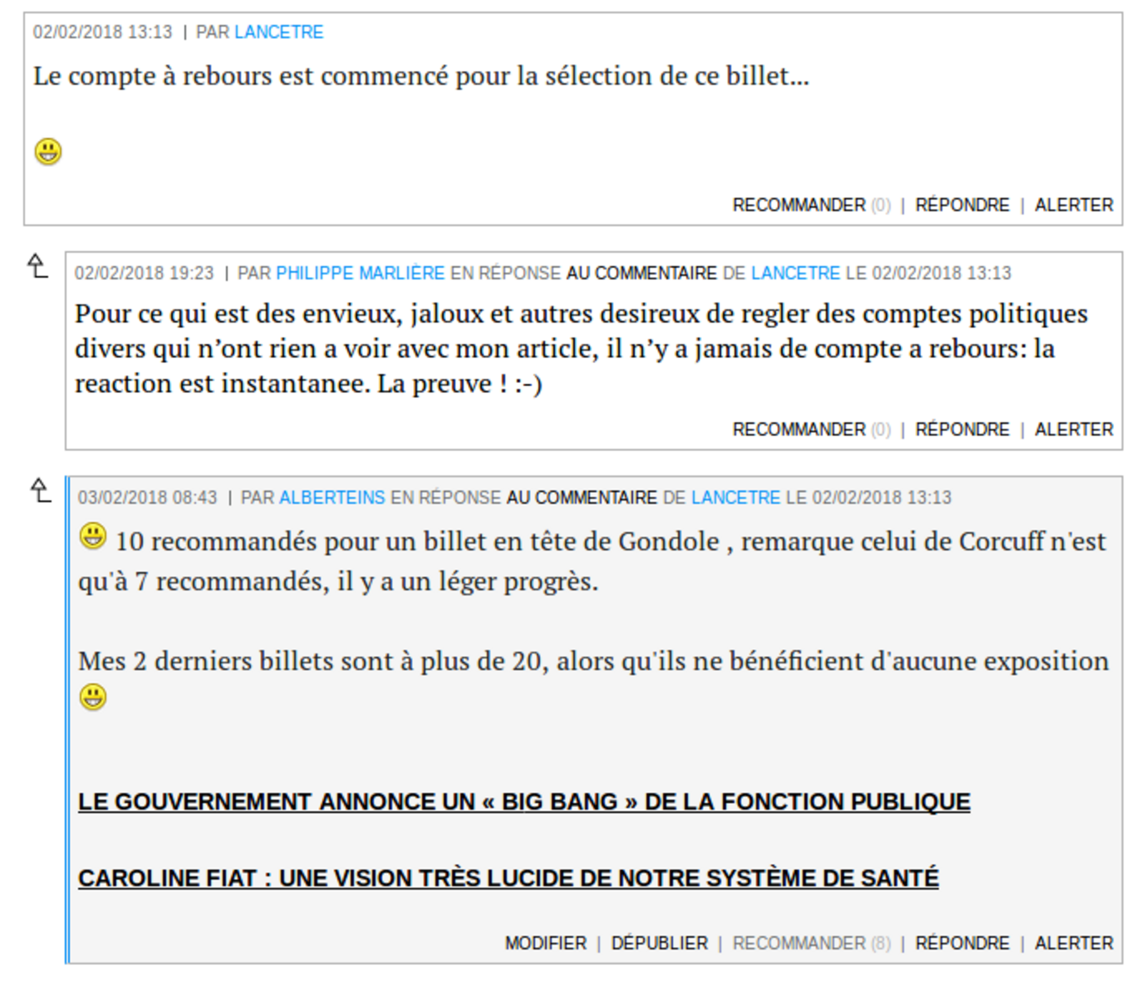 Un autre exemple sur ce billet :Penser le macronisme  ( les recommandés de LANCETRE ont disparu pas les miens)