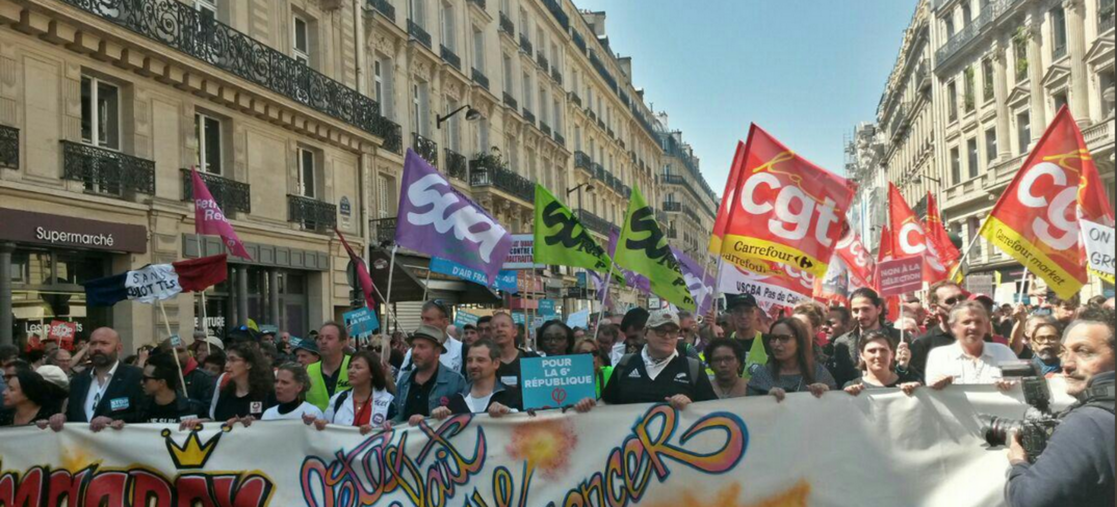 D'autres syndicats. Réunies le 3 mai à la Bourse du travail à Paris à l'initiative de l'association Attac, plusieurs organisations syndicales, politiques et associatives s'étaient mises d'accord sur le principe d'une manifestation le 26 mai pour l'égalité, la justice sociale et la solidarité. Parmi elles, La France Insoumise, Solidaires, le Snesup FSU, le Syndicat de la magistrature, la Fondation Copernic, Femmes Égalité ou le NPA.