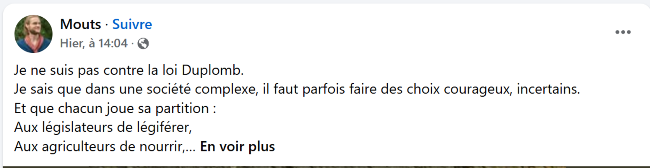 Se soustraire à la conflictualité, sous prétexte qu'il ne faut, selon Mouts, pas « juger », ne revient pas à élever le débat, mais à désarmer ce qu’il reste de vitalité démocratique, en entretenant l’illusion qu’il suffirait de ne pas être « contre » pour contraindre ceux qui n’ont jamais cessé d’imposer leur loi. Une véritable aubaine pour Duplomb et consorts.