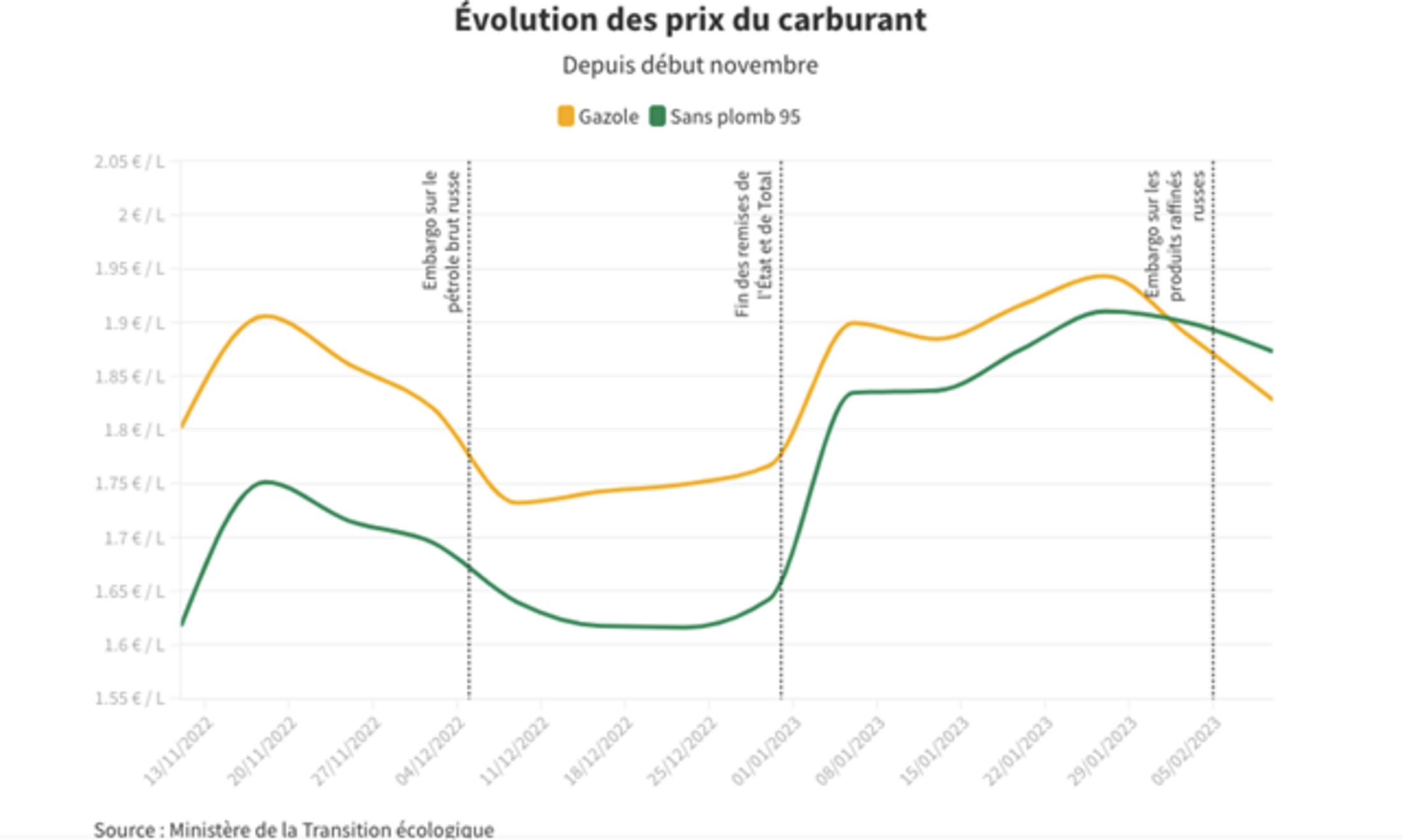 Face à la hausse du prix du carburant qui était constante depuis fin 2022, le gouvernement avait mis en place des réductions à la pompe. Le PDG de Total annonçait d’ailleurs que, grâce à ces réductions, Total avait rendu 550 millions d’euros aux automobilistes.