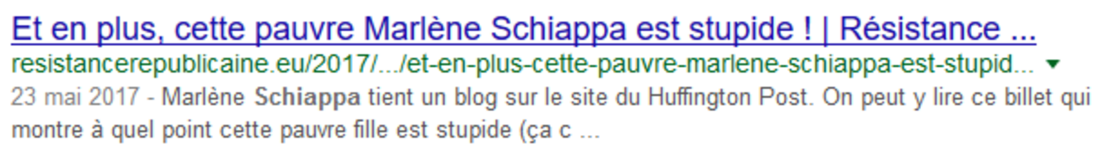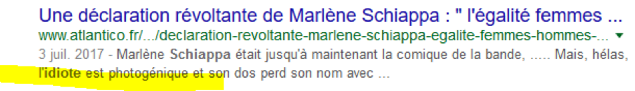 "En plus", Schiappa est stupide. Au moins lui reconnaît-on dans cette déclaration qu'elle a des idées que l'auteur désapprouve, mais qu'à cela s'ajoute la stupidité. Elle n'est donc qu'à moitié conne, ce qui est mieux que complètement conne. Mais il ne s'agirait pas d'oublier de le préciser tout de même.