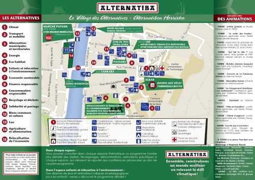 Le programme complet d'Alternatiba faisant près de 50 pages, voici le PLAN-PROGRAMME d'Alternatiba, tout le Village des alternatives résumé en deux pages, pour glisser dans la poche !