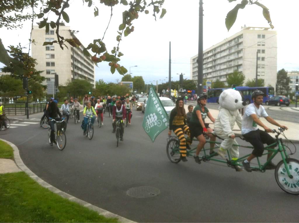 Mais il ne faut pas faire attendre les très nombreux cyclistes qui sont prêts à déambuler pour soutenir le projet Alternatiba et porter la transition écologique de la société. Près de 240 personnes étaient présentes à l’arrivée, vélorutionnaires et citoyens venus accueillir le Tour au Parc Blossac de Poitiers. Tous les bénévoles que nous rencontrons dans le petit village des alternatives installé pour l’occasion nous répètent la même chose : la préparation et la coordination de l’événement n’a pas été facile au début mais la convergence des luttes autour des idées portées par Alternatiba a permis de se fédérer. Des associations qui n’avaient pas l’habitude de travailler ensemble ont réussi à collaborer. Beaucoup d’interactions positives donc à Poitiers où tous les bénévoles ont déjà convenu d’un debreefing après notre passage afin de faire le bilan et de voir dans quelle mesure une poursuite du travail collectif serait possible. Un futur Alternatiba en perspective ? Nul doute en tout cas que nous en reverrons certains à l’arrivée finale du Tour Alternatiba le samedi 26 septembre à Paris.