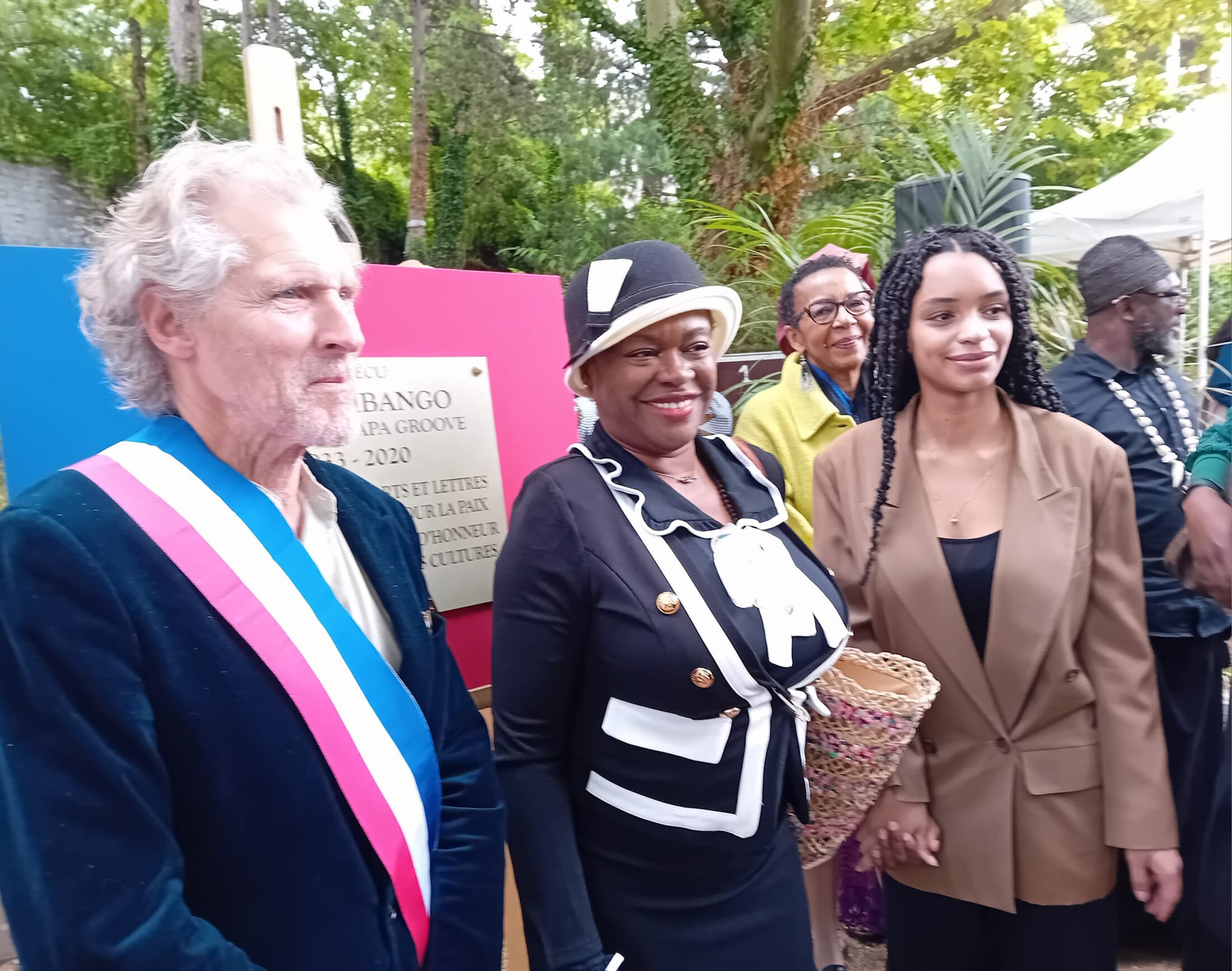Accompagnés d’un prêtre animiste, les membres de la famille de Manu DIBANGO ont aussi pris la parole. En effet, Manu DIBANGO a vécu dans le 20ème avec sa femme Coco, ses deux filles Georgia, disparue le 24 février 2023, et Manon, ainsi que son fils, Michel «Cet immeuble était pour nous, comme une famille XXL. Nous avons partagé nos coutumes dans un immeuble cosmopolite. C’est un des marqueurs forts de nos vies, en termes de solidarité, de partage et de fraternité», dit Michel DIBANGO, son fils. «Mon grand-père n’était pas seulement qu’un artiste, il a ouvert la voie, il a jeté un pont entre l’Afrique et la France, symbole du métissage culturel. Il disait «On ne peut pas peindre du Blanc sur du Blanc et du Noir sur Noir». Artiste avenant et chaleureux, mondialement reconnu de son vivant, après une longue errance à travers le monde, il a fini par poser ses valises, avec un lien d’ancrage très fort dans le 20ème arrondissement», dit Victoria PALIX-DIBANGO, sa petite-fille et fille de Georgia.