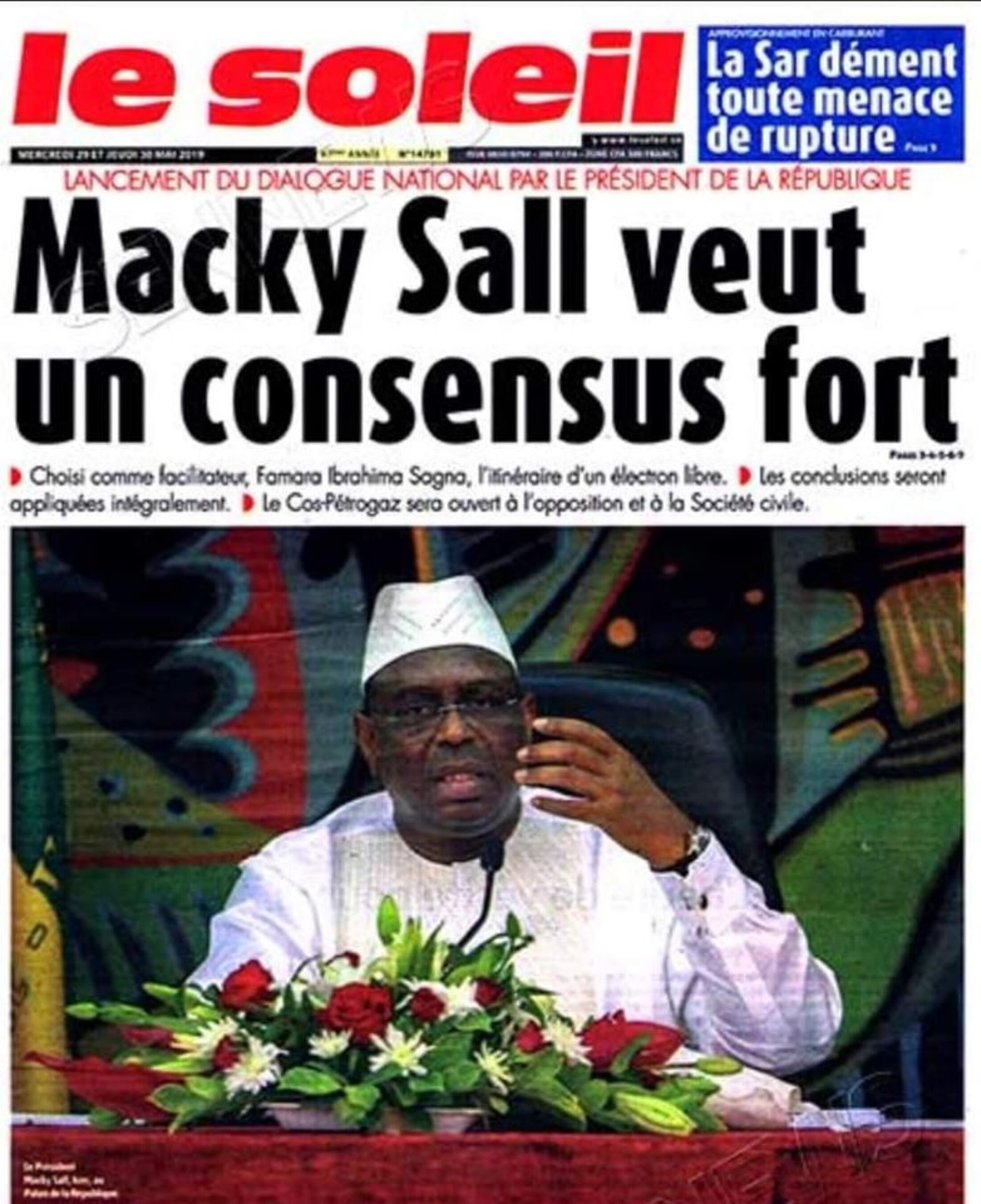 «Macky veut un consensus fort» titre le journal le Soleil. Macky a pour ambition de réconcilier le Sénégal avec lui-même. Le général Mamadou NIANG, ancien président de LONEL, va présider la Commission de concertation sur le processus électoral, qui est installée, à l’unanimité, le vendredi 31 mai 2019. Je salue la présence à cette commission, du professeur Babacar KANTé, un brillant universitaire, homme rigoureux et intègre, j’ai été son assistant de droit public, à l’université de Dakar, avant qu’il ne rejoigne Saint-Louis. En effet, Macky SALL, pour reprendre une métaphore d'un dicton peul, c'est cette aiguille qui raccommode ce tissu abîmé, par les forces de la Discorde et de la Haine. Macky a choisi ce qui unit et non ce qui divise ; président de tous les Sénégalais, il entretient les liens du bien-être ensemble. Macky c'est Sénèque, il a pris de la hauteur, et ne prête pas attention aux injures et aux calomnies il a choisi de tenir son rang, celui d'homme de dignité engagé pour le bien-être des sénégalais dans l'unité et la paix. Face à une opposition bavarde et pleurnicharde, désunie et sans projet alternatif crédible, Macky en partisan de Sénèque a pris de la hauteur : «Offenses, insultes, affronts, avanies de toute nature, supportez cela comme les cris de l’ennemi, comme les traits lancés de trop loin et les pierres qui, sans vous blesser, crépitent, autour de votre casque. Quand aux injures endurez-les, comme les coups dont les uns percent vos armes, les autres votre poitrine, sans tomber, même sans reculer. Et vous vous sentez accablés sous la violence de l’attaque, songez encore qu’il est honteux de lâcher pied. Défendez le poste que vous a assigné la nature. Vous demandez quel poste ? Celui d’Homme. Le sage a lui une autre ressource, opposée à la précédente. Car vous êtes en pleine action, alors qu’il tient déjà la victoire. Ne soyez pas rebelle à votre bien. En attendant d’atteindre la vérité, nourrissez-en l’espoir pour vos nos âmes, accueillez de bonne grâce les maximes salutaires et de toute votre volonté, de toute votre foi, aidez-vous qu’il y ait des êtres invincibles, des caractères contre lesquels la Fortune ne puisse rien. C’est l’intérêt de la République même» disait Sénèque.